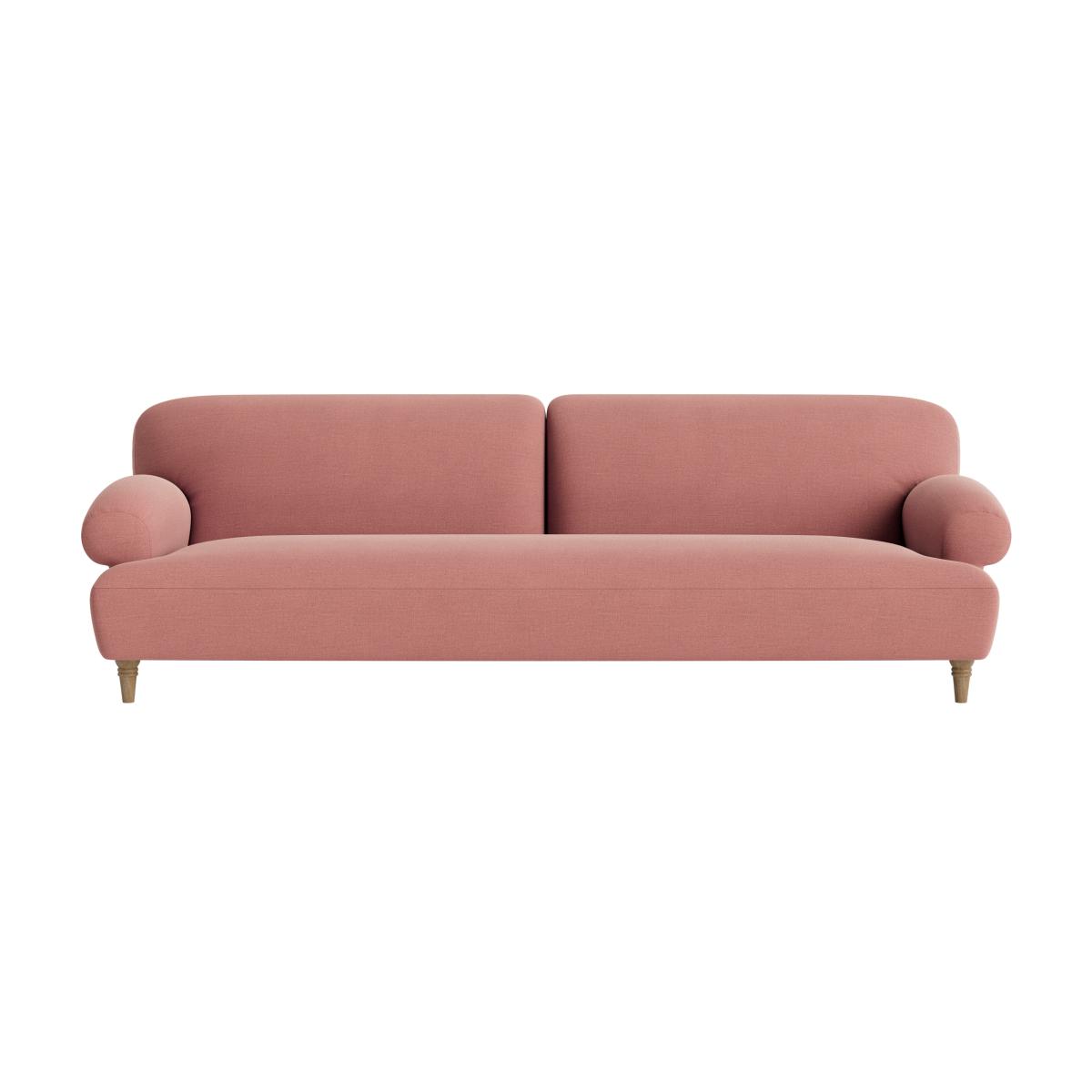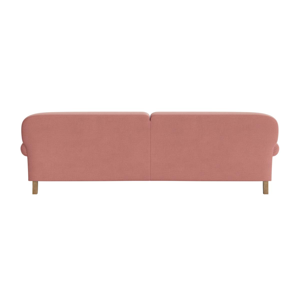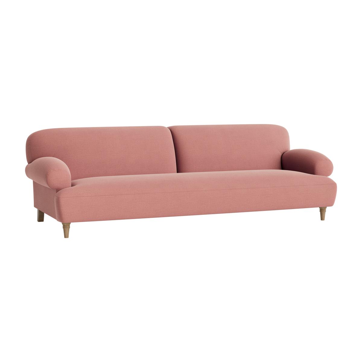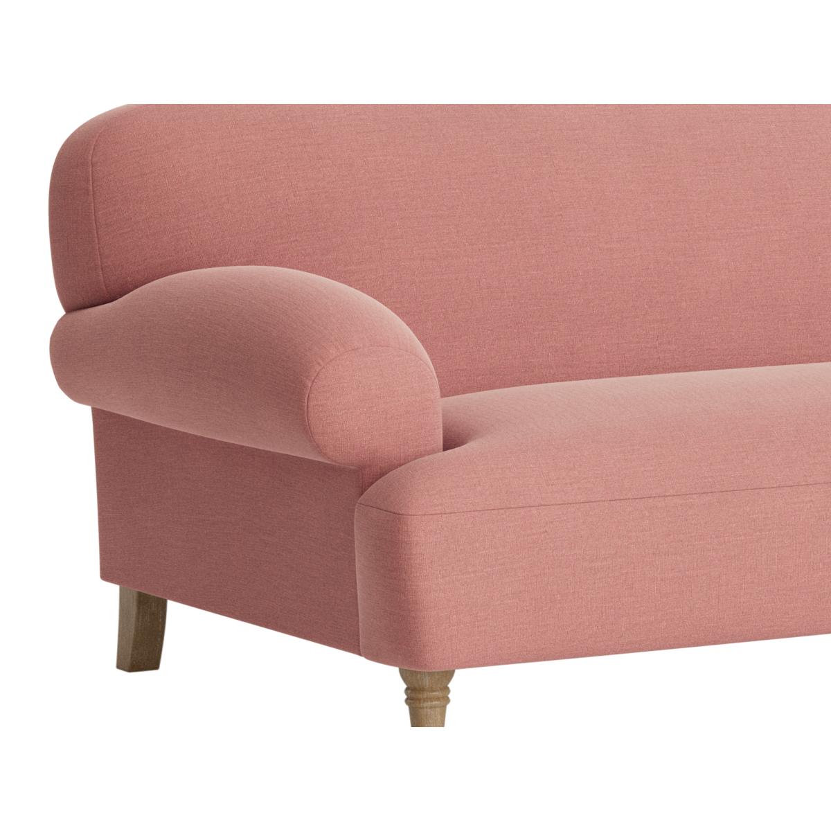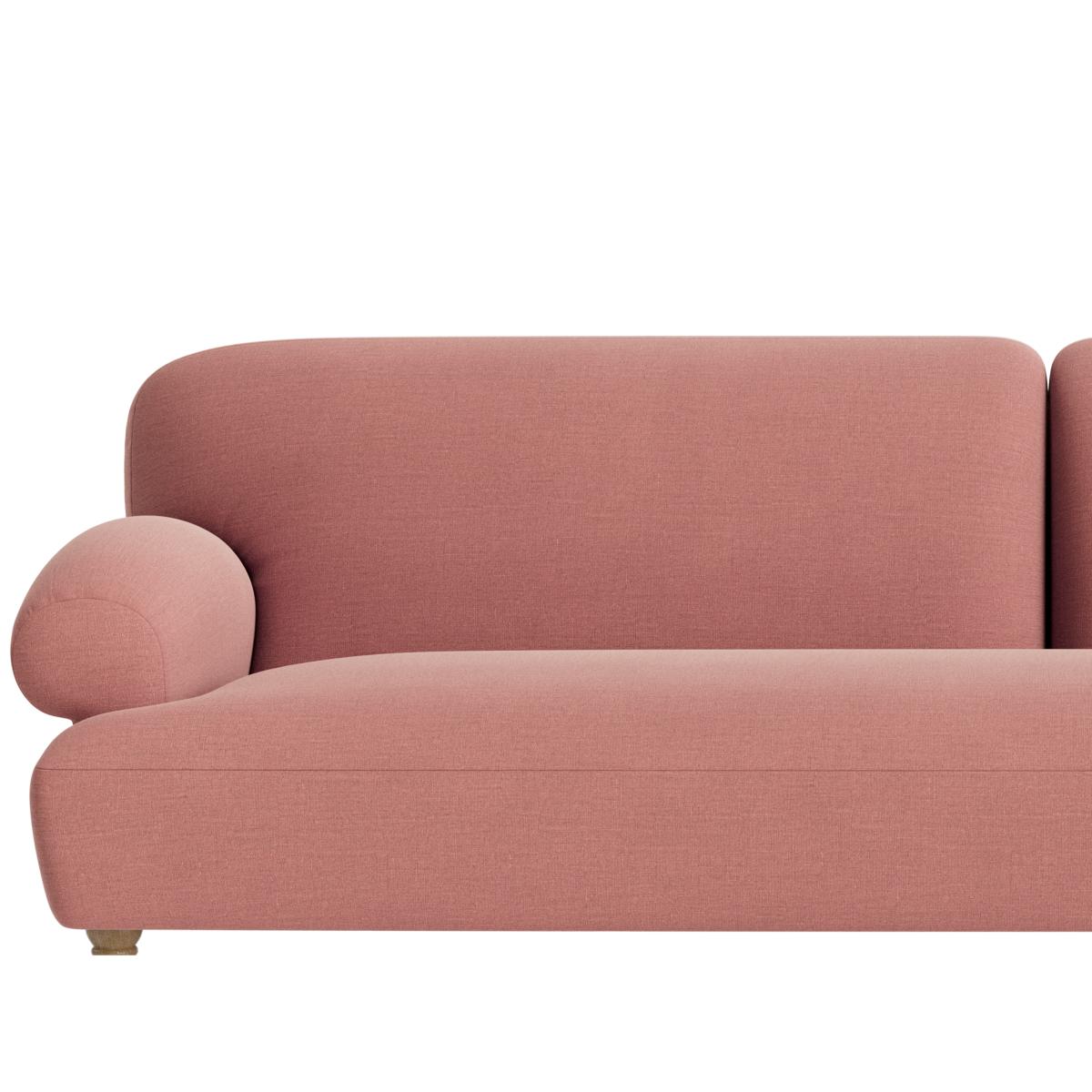 I love this sofa for its relaxed, inviting look that works just as well in a contemporary as in a retro-inspired space. The soft pink shade adds a touch of subtle colour without overpowering, making it versatile enough to pair with neutral tones or richer statement colours. It’s perfect for a casual lounge or working as a statement piece in a minimalist interior. To style it, consider adding textured cushions or throws in contrasting fabrics like velvet or knits for visual interest and comfort. Its simple silhouette also makes it adaptable to both small and large spaces, and pairing it with a sleek coffee table or a compact sideboard can enhance its practicality while maintaining a clean, uncluttered aesthetic.