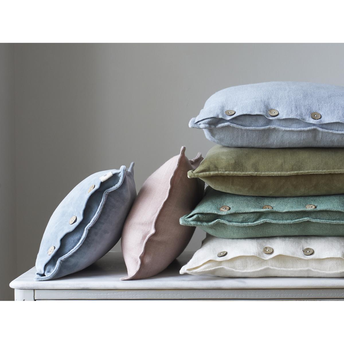 Our signature Loaf cushion: relaxed floppy edges, lovely wooden buttons and very, very soft. Sink in.