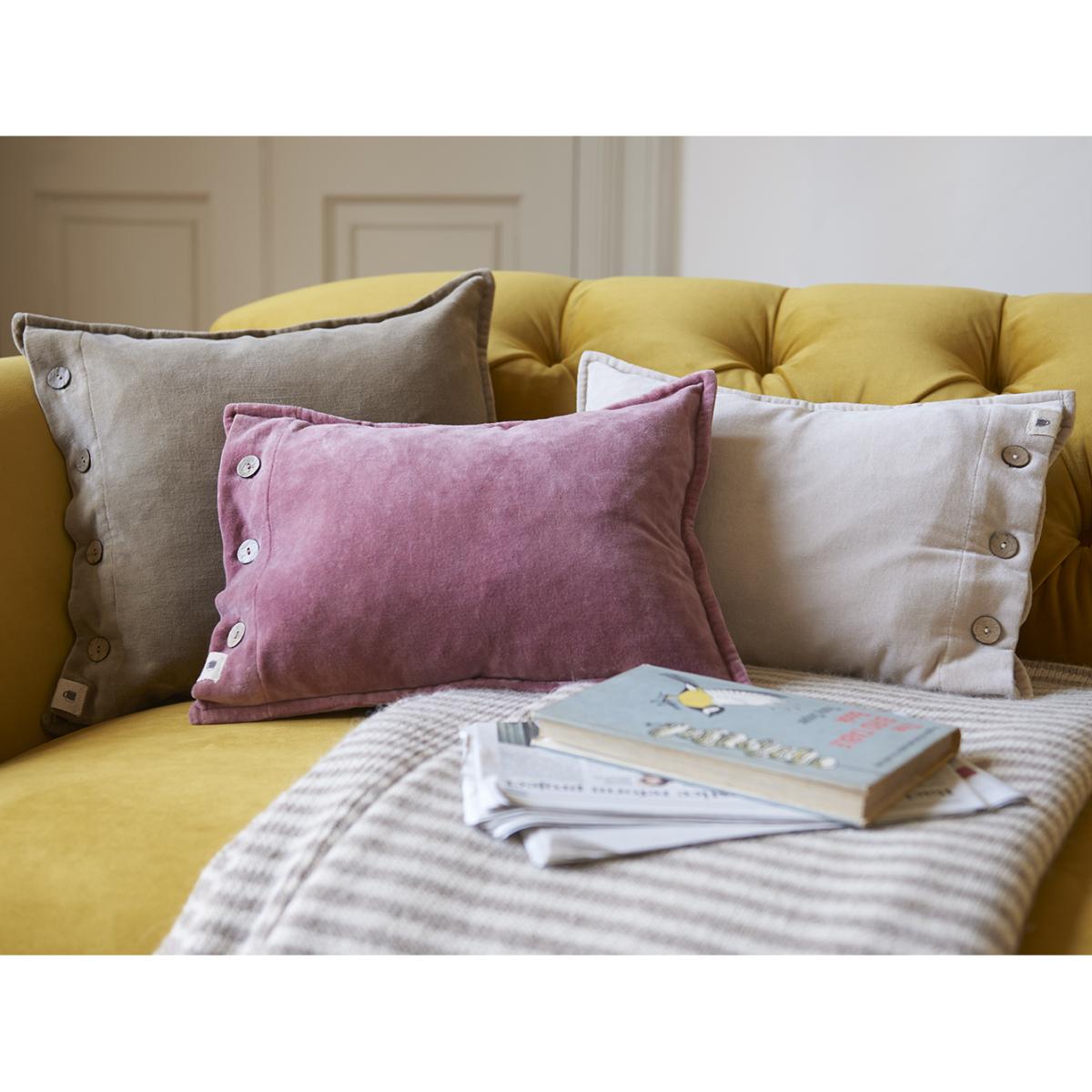 Our signature Loaf cushion: relaxed floppy edges, lovely wooden buttons and very, very soft. Sink in.