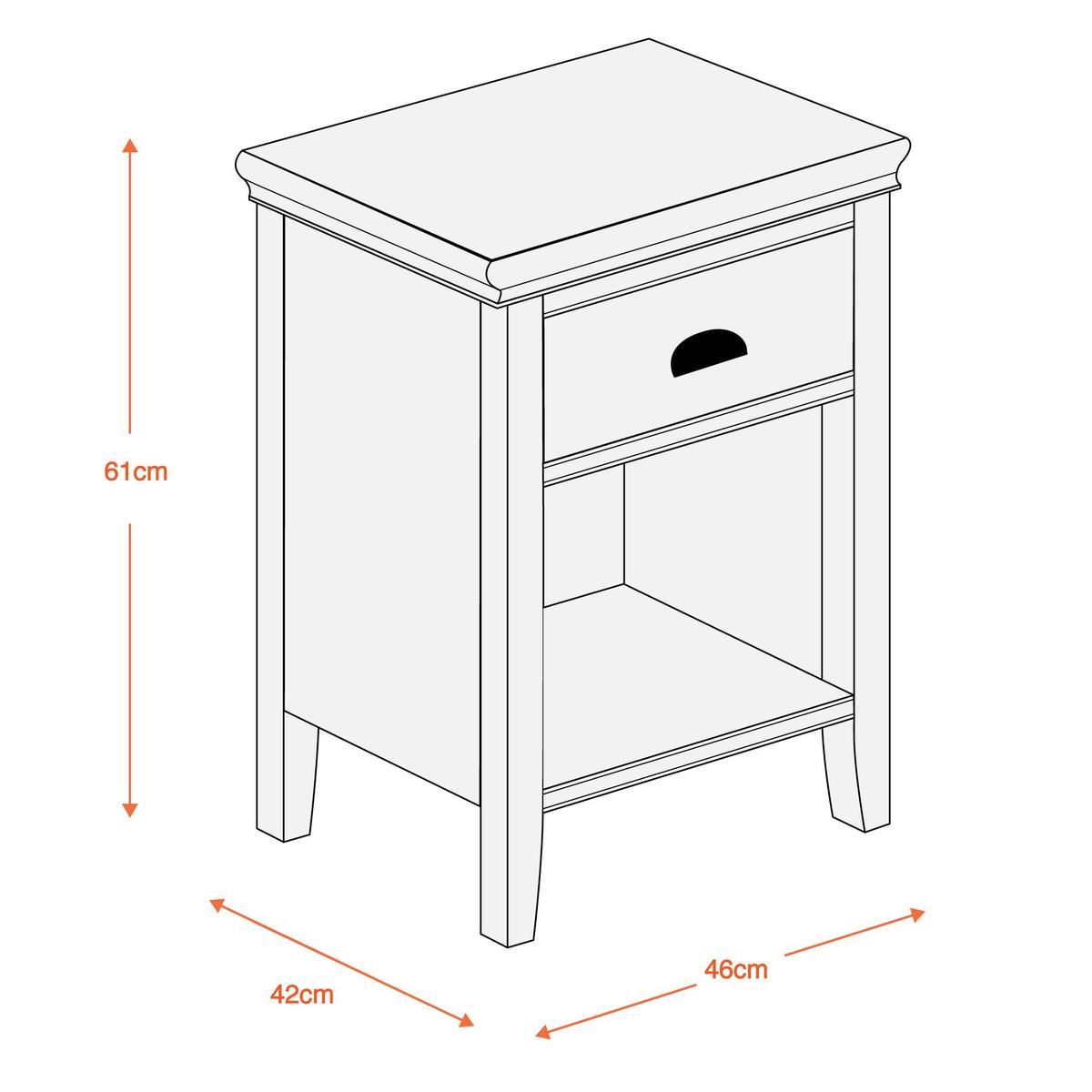 Crafted from solid oak, oak veneer and beech wood, this fully assembled bedside table includes one shelf and one soft close drawer with a brushed steel cup handle. Offering a cream painted finish this bedside table features an oiled American oak top.