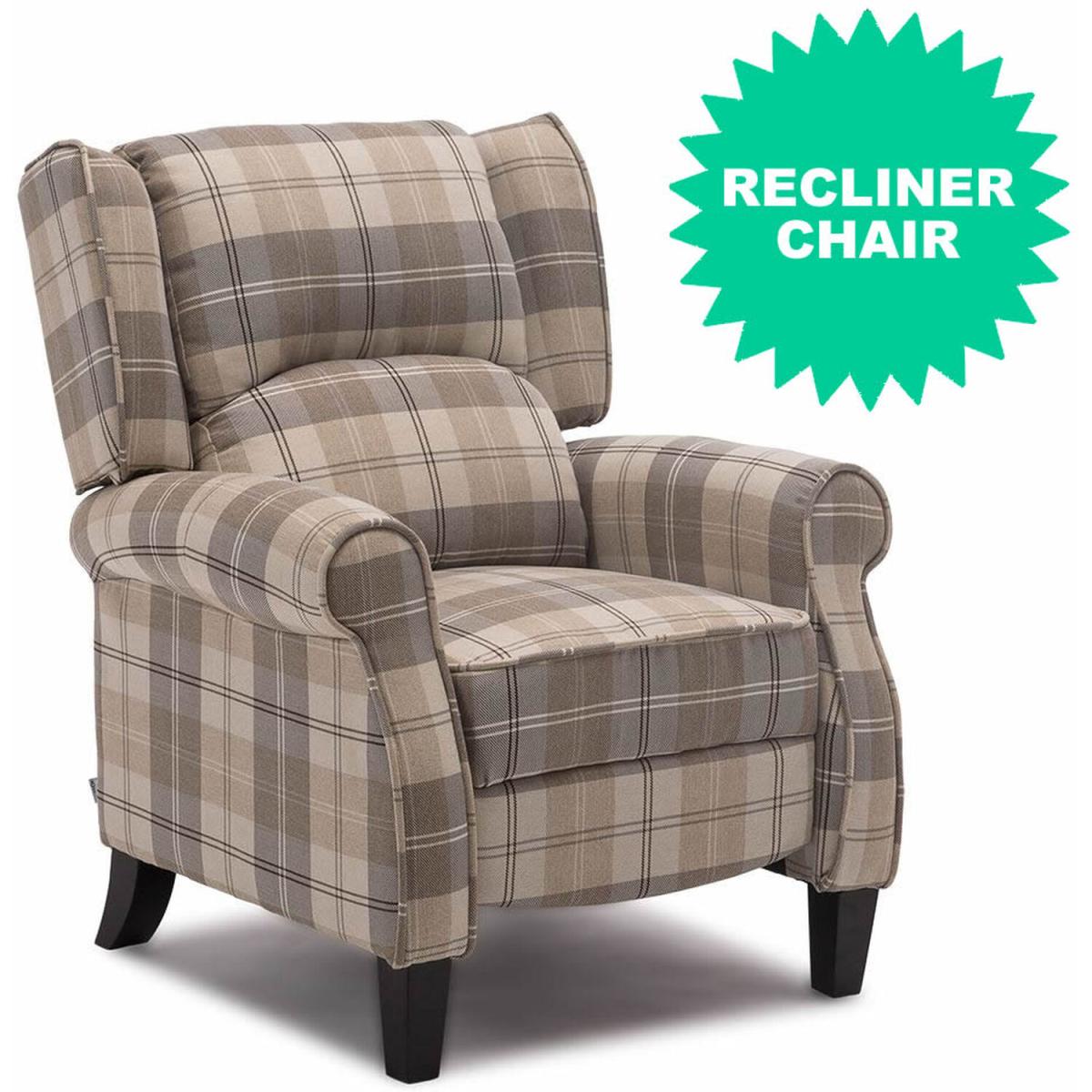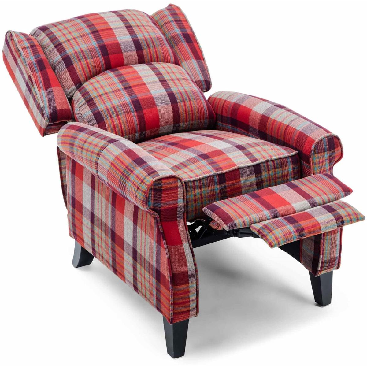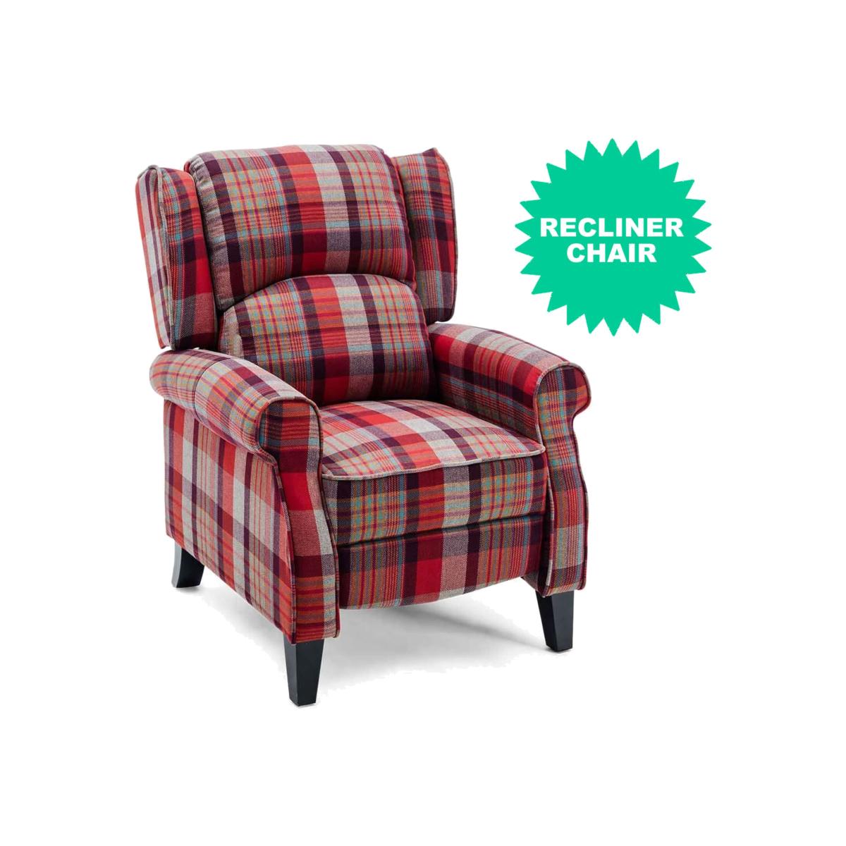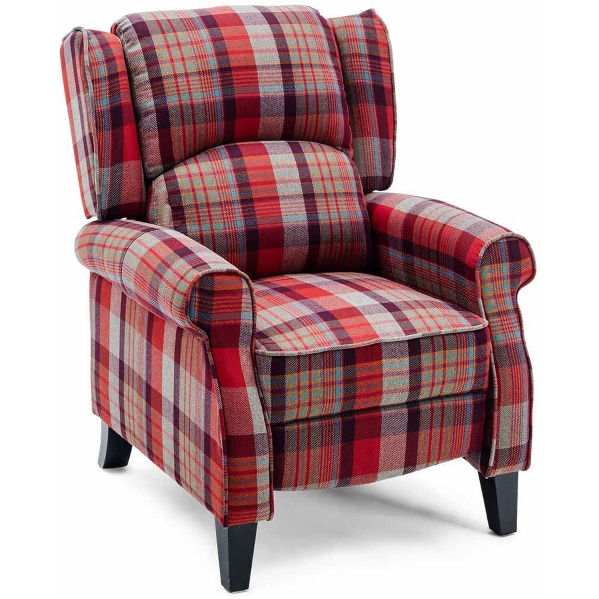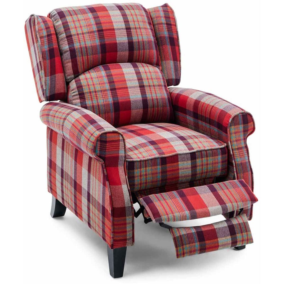 Eaton Wing Back Fireside Check Fabric Recliner Armchair - Red