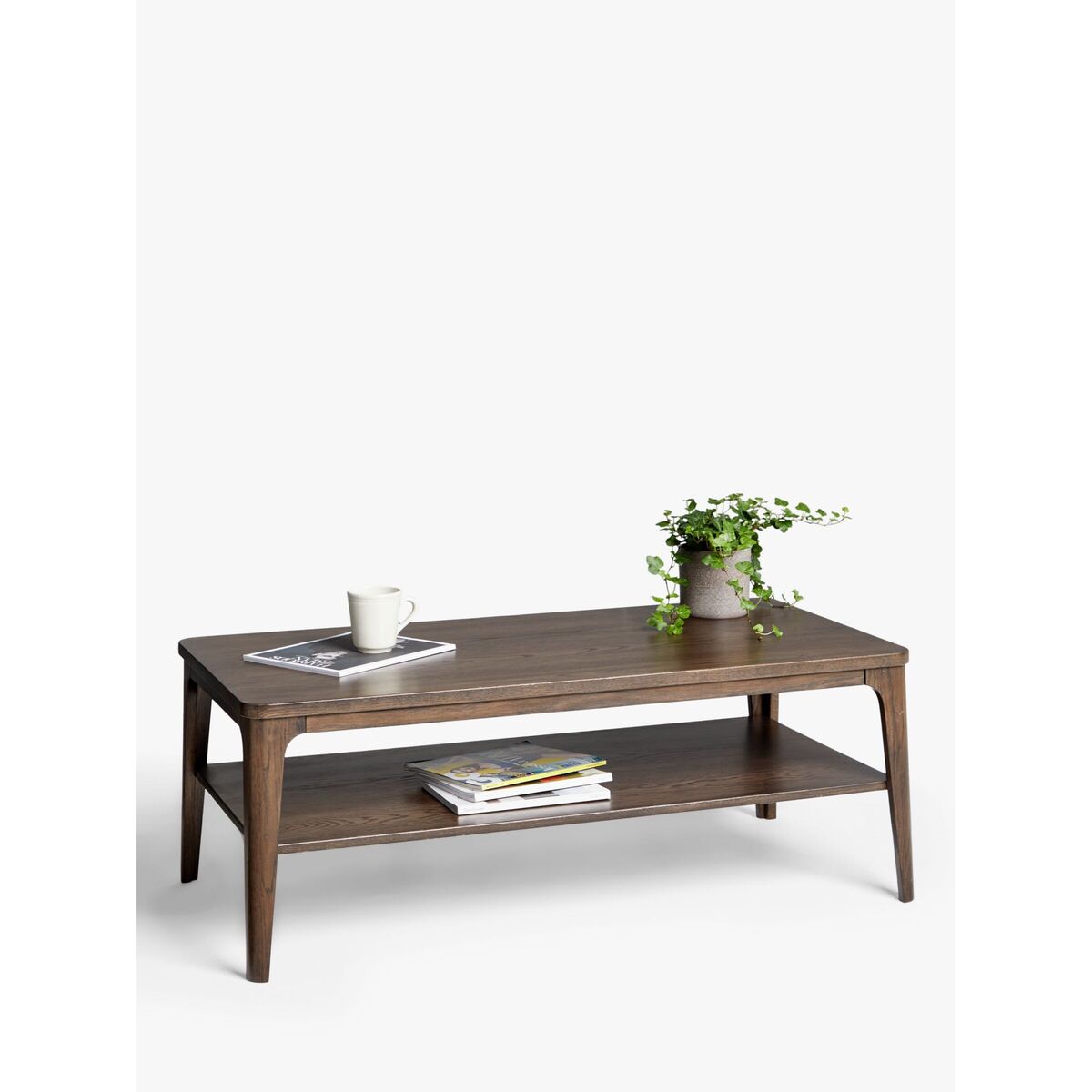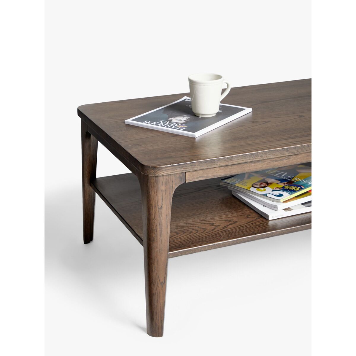 This practical, two-tiered coffee table is a celebration of modern, Scandinavian-inspired design and natural materials. It's made from solid oak, with the addition of oak veneers in the darker wood, and features subtly tapered legs and rounded edges. Perfect for introducing a softer styling touch to the centre of your living room. Want to see it first? You may want to see and get a feel for the furniture in one of our shops before ordering. We'll be able to tell you where the range you'd like to view is on display.