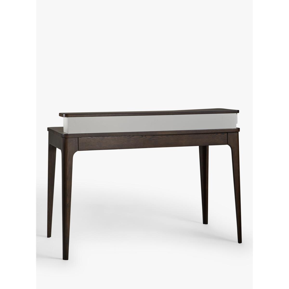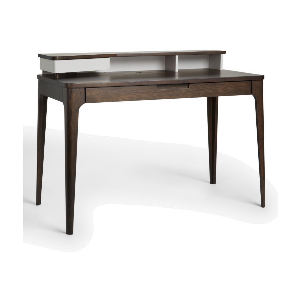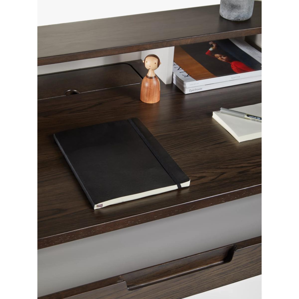 A practical desk for your home office, made from high-quality solid oak and veneers. It's reassuringly sturdy and its Scandi-inspired shape will bring a softer look to your space thanks to rounded edges and tapered legs. There's plenty of storage space for stationery and work documents and the two-tier design allows you to carefully position lighting or additional screens. Want to see it first? You may want to see and get a feel for the furniture in one of our shops before ordering. We'll be able to tell you where the range you'd like to view is on display.