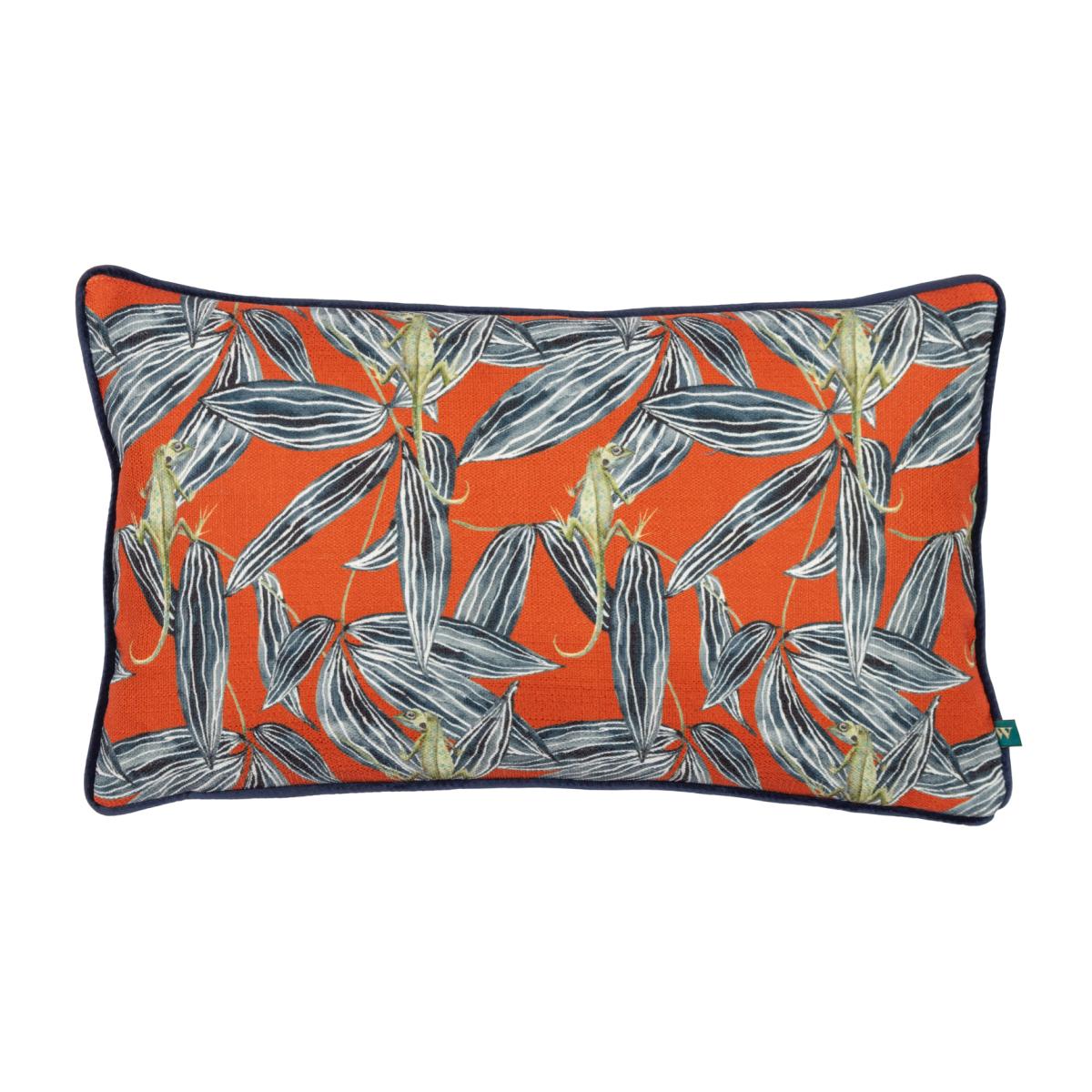 Amongst the broad, grey monochrome tropical leaves, the nimble, hand-painted exotic lizards clamber acrobatically, against a bold coloured background and creates a stunning piece which will add a touch of the tropics to your home.