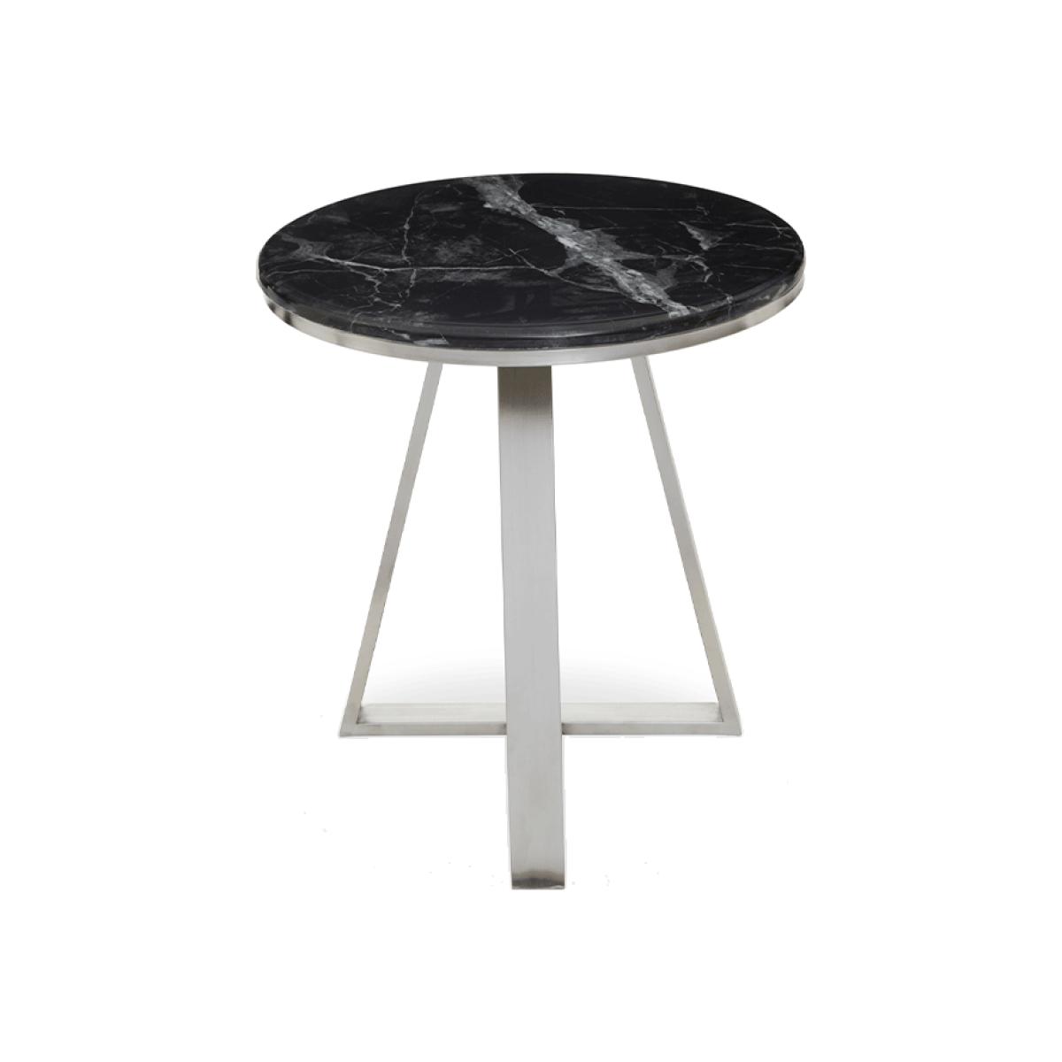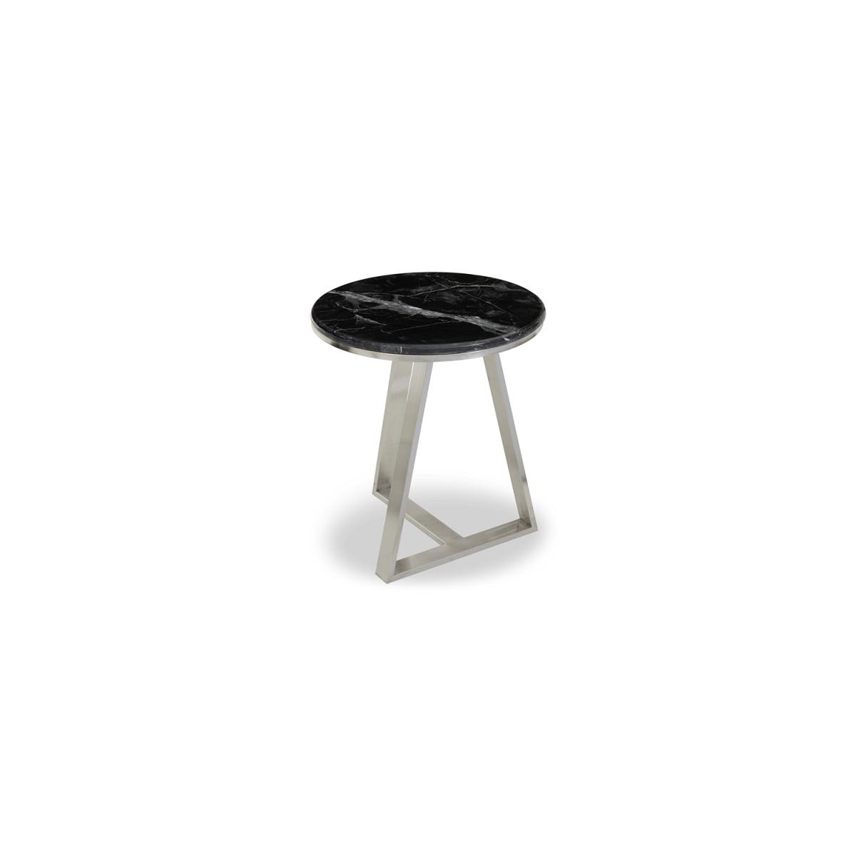 Crafted from black marble with sublime silver veining and featuring a shapely stainless-steel frame, the Ebony side table is a sculpture of style. Enjoy true luxury with touch of abstract design.