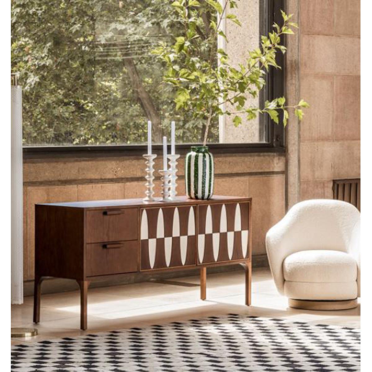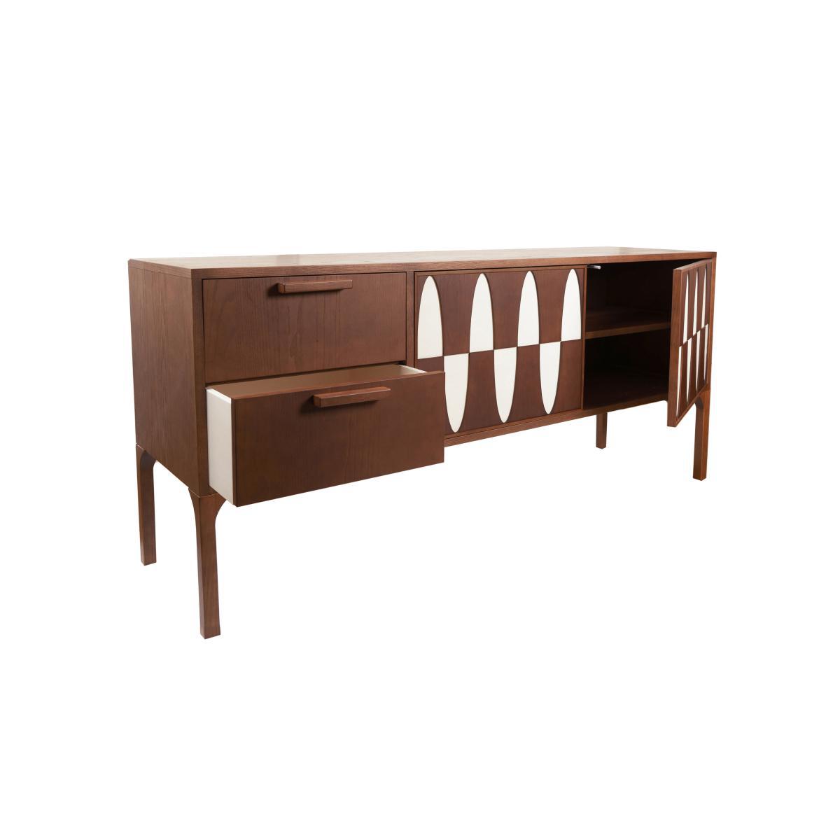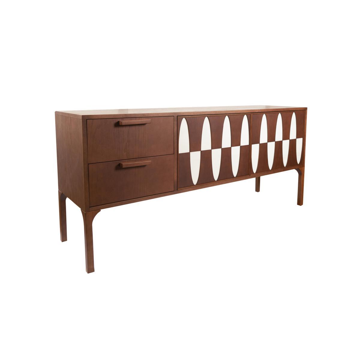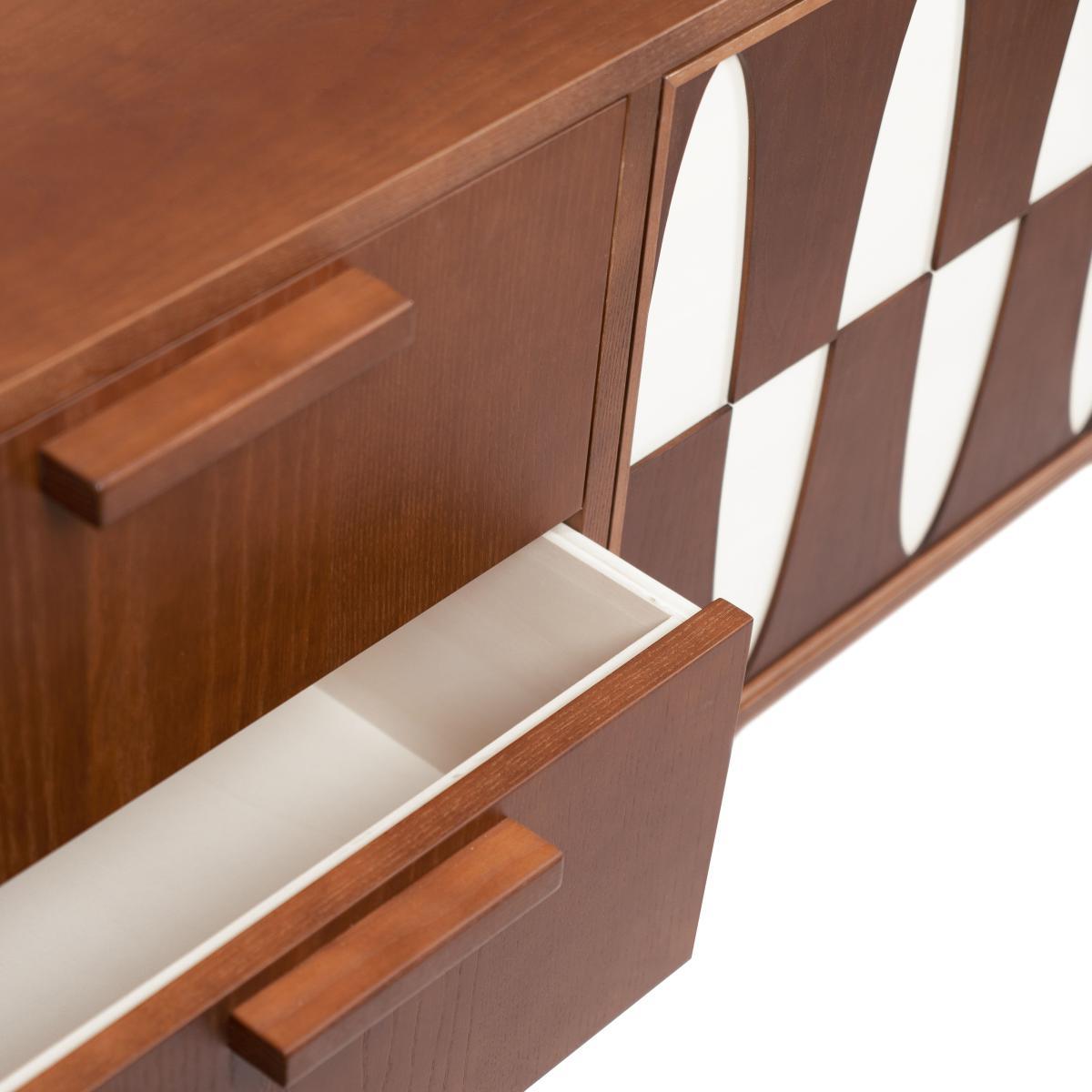 "Inspired by a wave pattern, the Écailles collection combines design and craftsmanship. The pieces stand out with the contrast between their geometric shapes and “Écailles” (scales) pattern. The combination of two shades of wood and the finesse of the legs make each piece in the collection unique. Designer Sarah Poniatowski: “The inspiration behind this collection: board games! Children playing checkers, a game of backgammon… I think above all that I wanted to invite them to play. Like a pressing need to feel the emotions of sharing and togetherness. A collection that would provide a link between the uncertain, sometimes anxiety-provoking world outside, and indoors, a place of balance, comfort and interaction. Pieces that would echo each other and turn heated debates from the outside into fun face-to-face situations at home. ”.