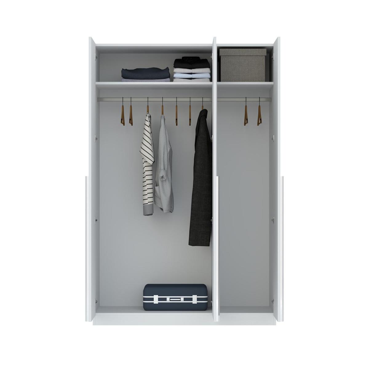 I’m a fan of the Echo wardrobe for its clean lines and full-length mirrored centre door, which instantly makes even a compact bedroom feel brighter and more spacious. Its matte white finish and slim handles suit modern, Scandi or minimalist interiors without overwhelming the scheme. For practical styling, place it opposite a window to bounce natural light around the room, then layer a simple bench or a woven rug in front to create a relaxed dressing spot. Inside, use matching hangers and clear box organisers on the top shelf to keep clothes and accessories tidy and easy to find.