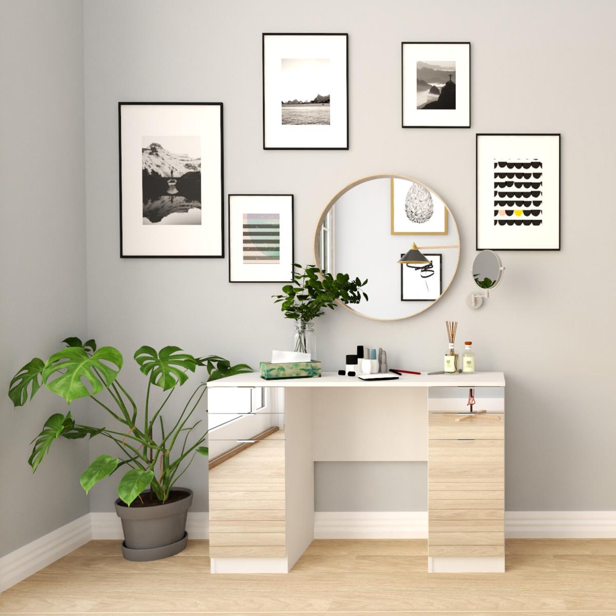 I really like this dressing table because of its clean, modern design and versatile white finish, which makes it easy to incorporate into a variety of interiors, from minimalist to Scandinavian styles. It works well in both larger bedrooms and smaller spaces, thanks to its practical storage with four drawers and two doors, helping to keep your essentials organised and out of sight. To style it, consider adding a simple mirror, some tidy organisers, and a few decorative accessories like candles or small plants to create a functional, yet inviting vanity area. The white finish keeps the look fresh and light, and it pairs beautifully with both soft pastel tones and bolder colours, offering flexibility for changing your decor over time.