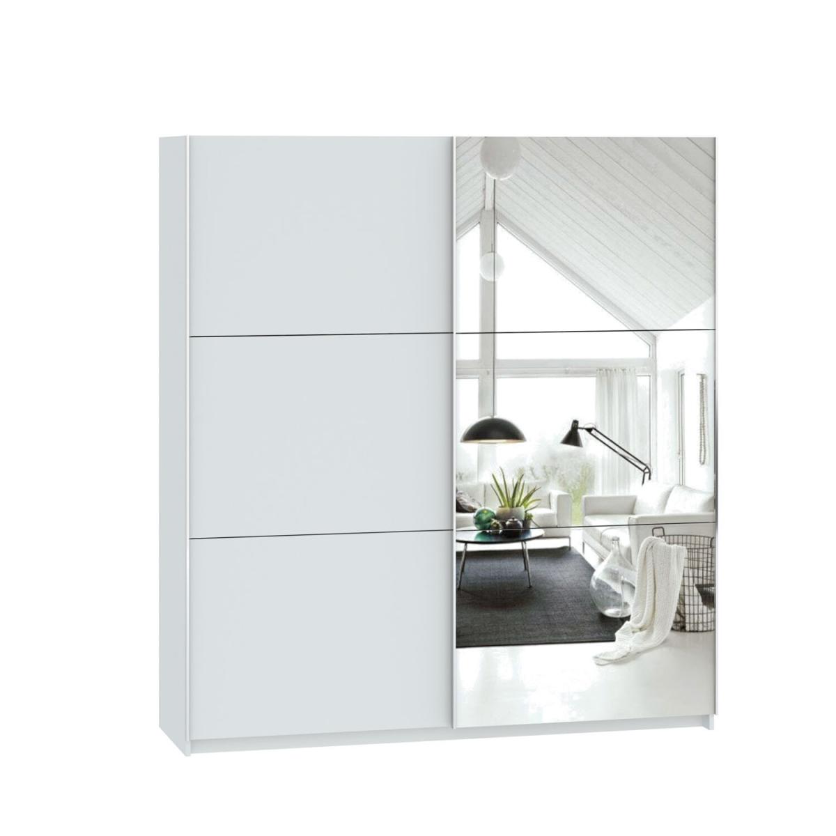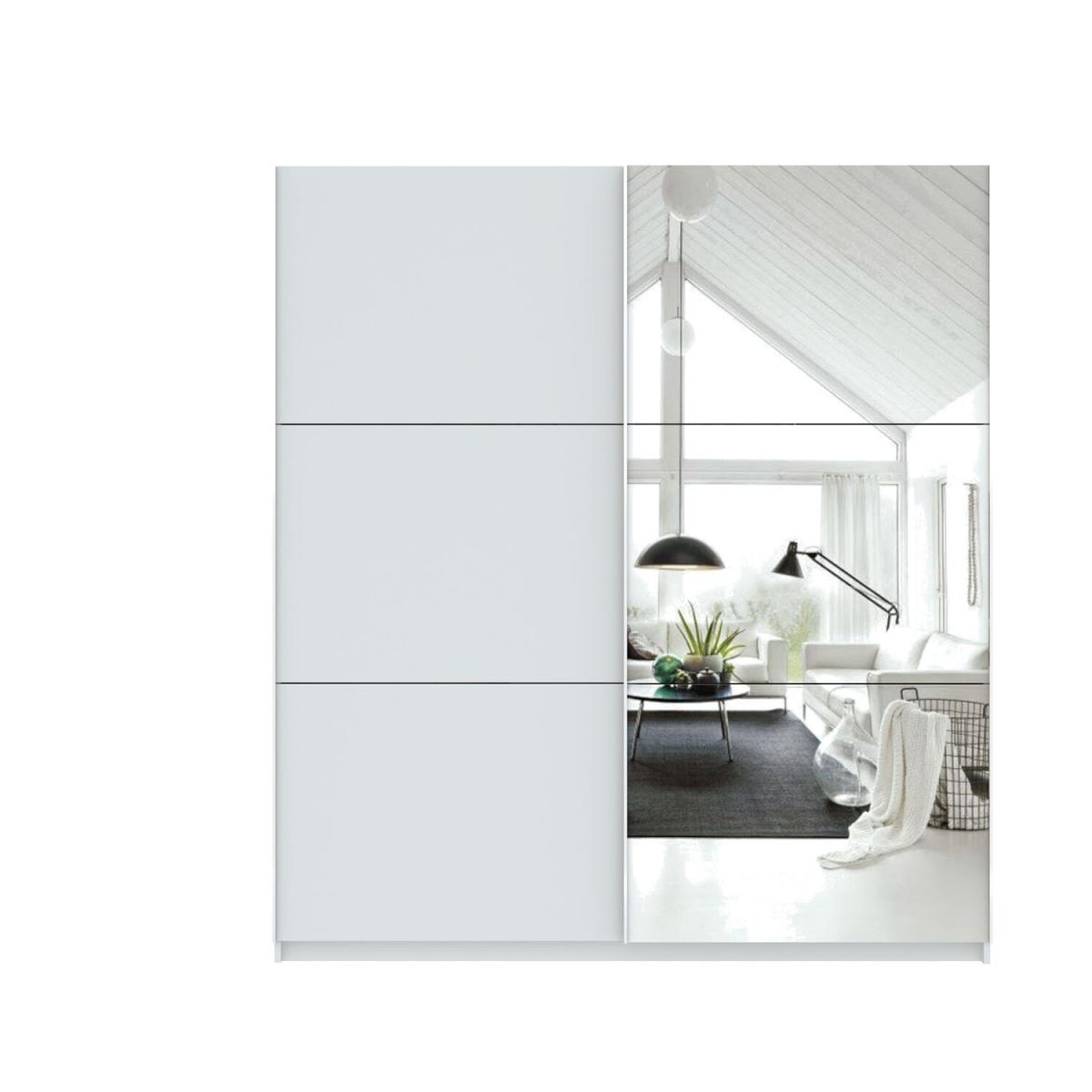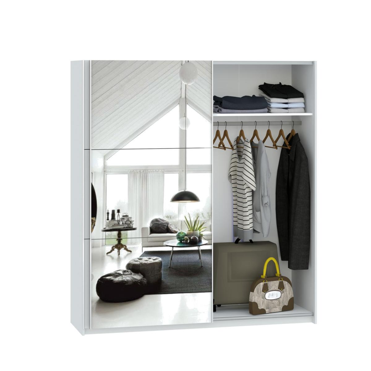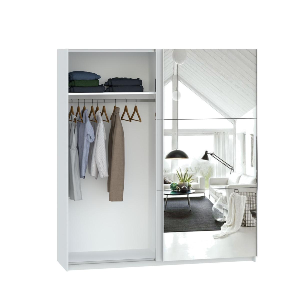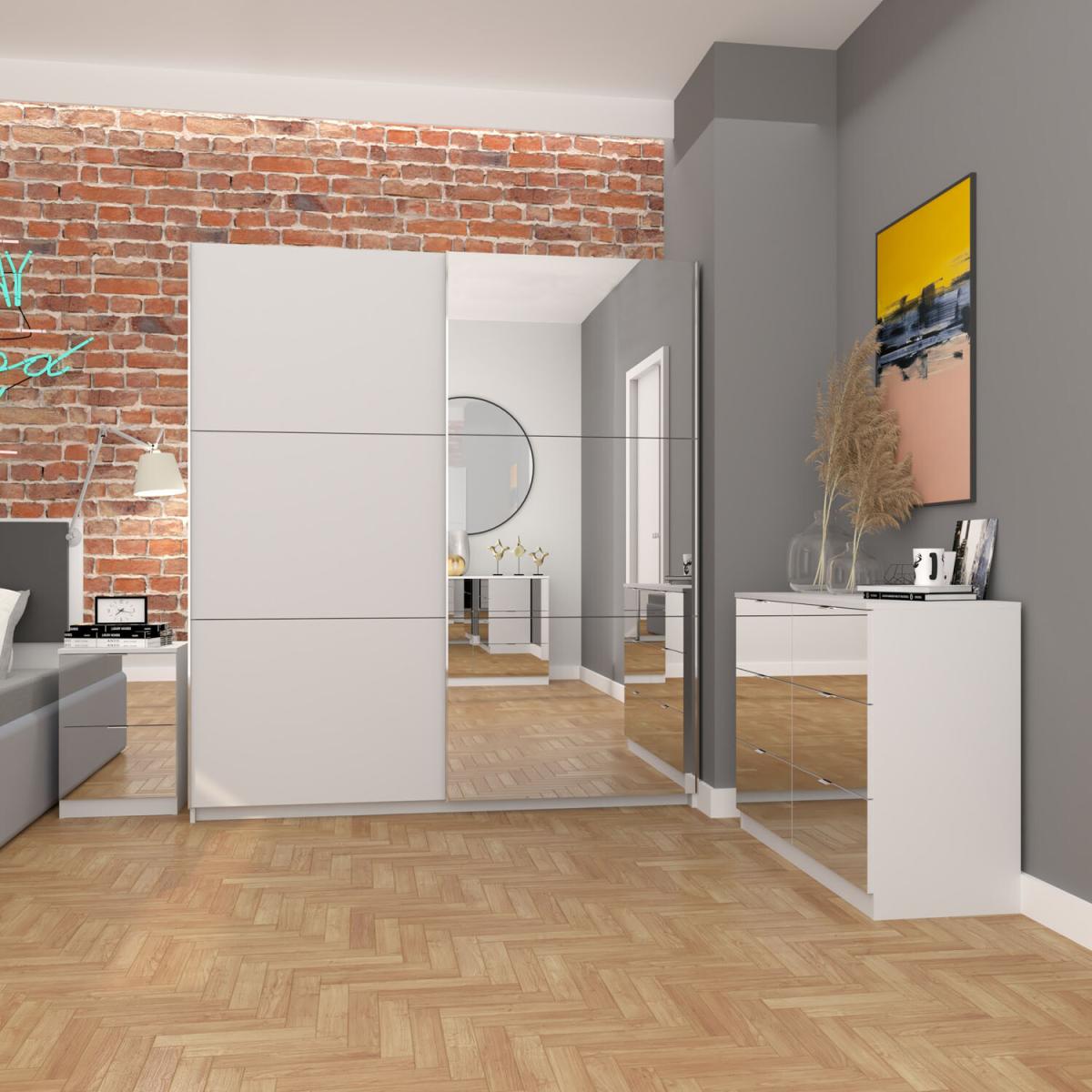This Echo Wide Sliding Door Large Wardrobe is an extension of the ever popular Echo collection. Featuring a sleek white matte finish with sliding doors covered in mirrors, this contemporary wardrobe is sure to look stunning in your space. This desirable piece of bedroom furniture includes a hang rail for your clothes as well as a shelf that be used for accessories, shoes, and bags. Easy to coordinate thanks to its simple yet sophisticated design, it will make a spectacular centrepiece for your bedroom whilst helping you keep it neat and organised.