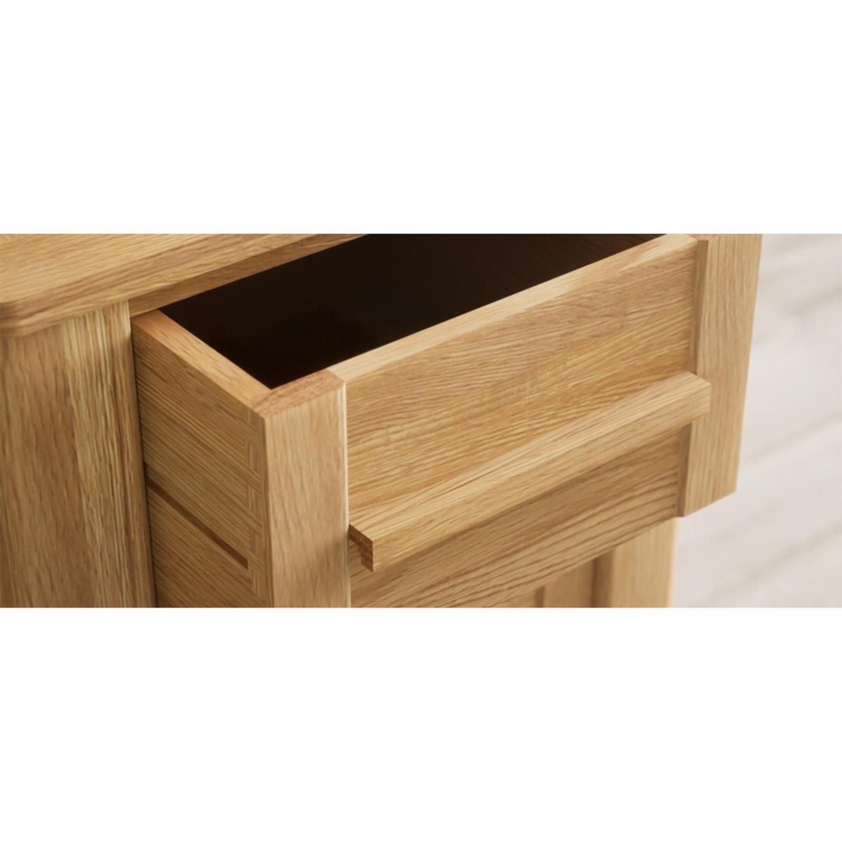 The Eclipse solid oak tallboy is a versatile piece that brings natural warmth and texture to a variety of interiors. I love its clean, timeless design, making it suitable for both contemporary and rustic settings. Its five drawers offer practical storage, ideal for bedrooms or even living spaces where organisation is key. When styling, consider highlighting its natural oak finish with neutral or muted tones, and add decorative touches like vintage handles or subtle hardware for a personalised touch. To enhance its impact, place it against a complementary wall colour or within a clutter-free setting, allowing the quality of the wood to be the focal point. This tallboy is not only functional but also a durable statement piece that ages beautifully over time.