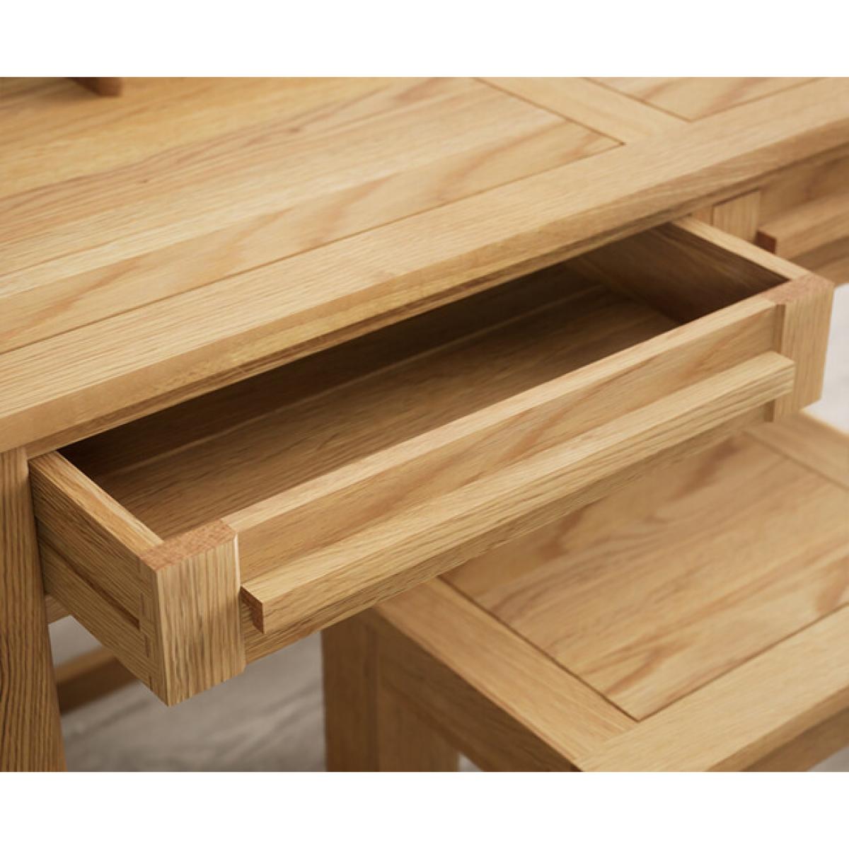 The Eclipse Solid Oak Dressing Table Stool features a clear finish, with rounded corners to match with the Eclipse oak dressing table.
