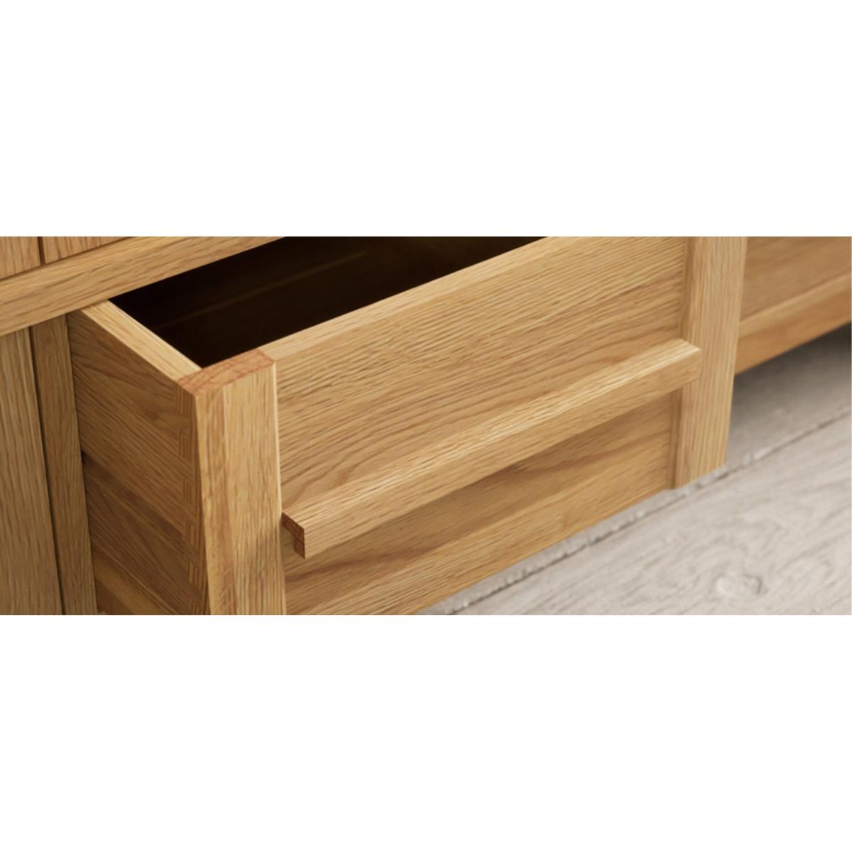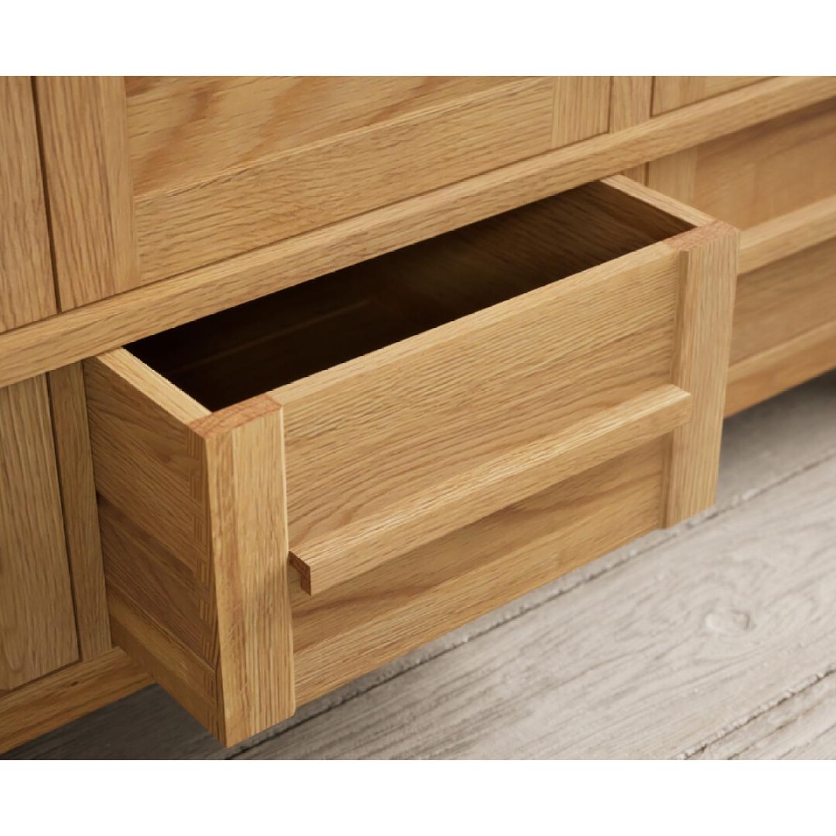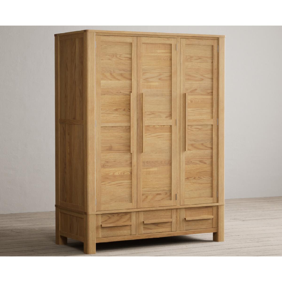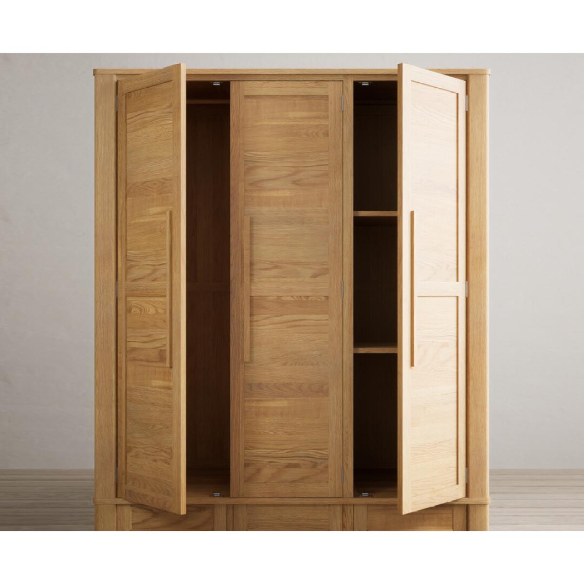 The Eclipse Solid Oak Triple Wardrobe features a natural finish and minimalist panelled design, complete with Dovetail drawers and inbuilt handles.