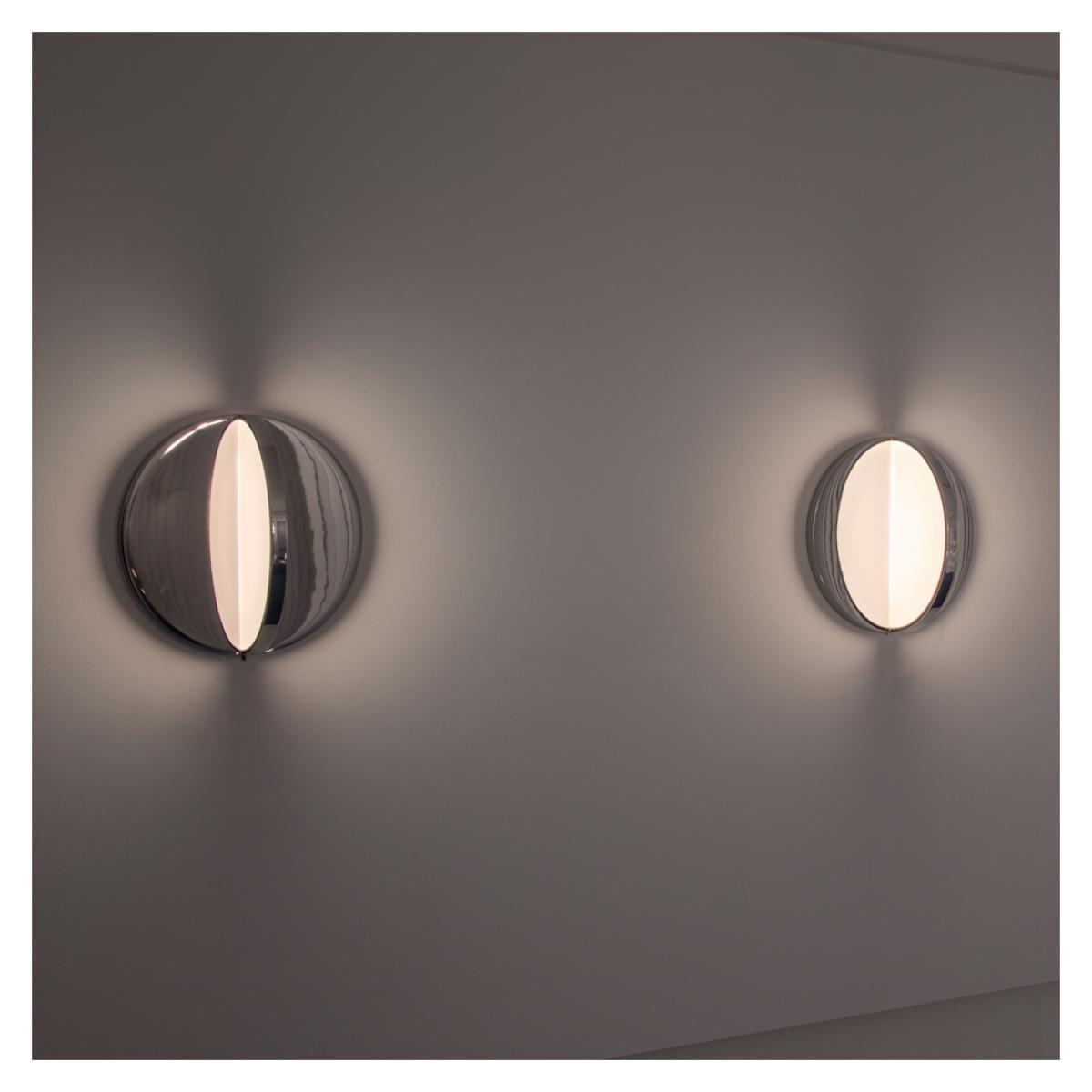 Celestial in name and inspiration, the Eclipse Surface Light has been exquisitely designed by award-winning designer Lee Broom. Expertly crafted from polished chrome with an opal acrylic diffuser, the Eclipse Surface Light tricks the eye by mirroring the light to create a full circular reflection. Perfectly suited as a wall or floor light, this striking light would enhance any surface. Recipient of the prestigious British Designer of the Year Award in 2012, Lee Broom has collaborated with leading brands such as Christian Louboutin, Mulberry and Matthew Williamson. His design approach is coloured by his early interest in the dramatic arts, lending a sense of narrative and drama to his timeless pieces. Integrated LED bulbs (8. W)