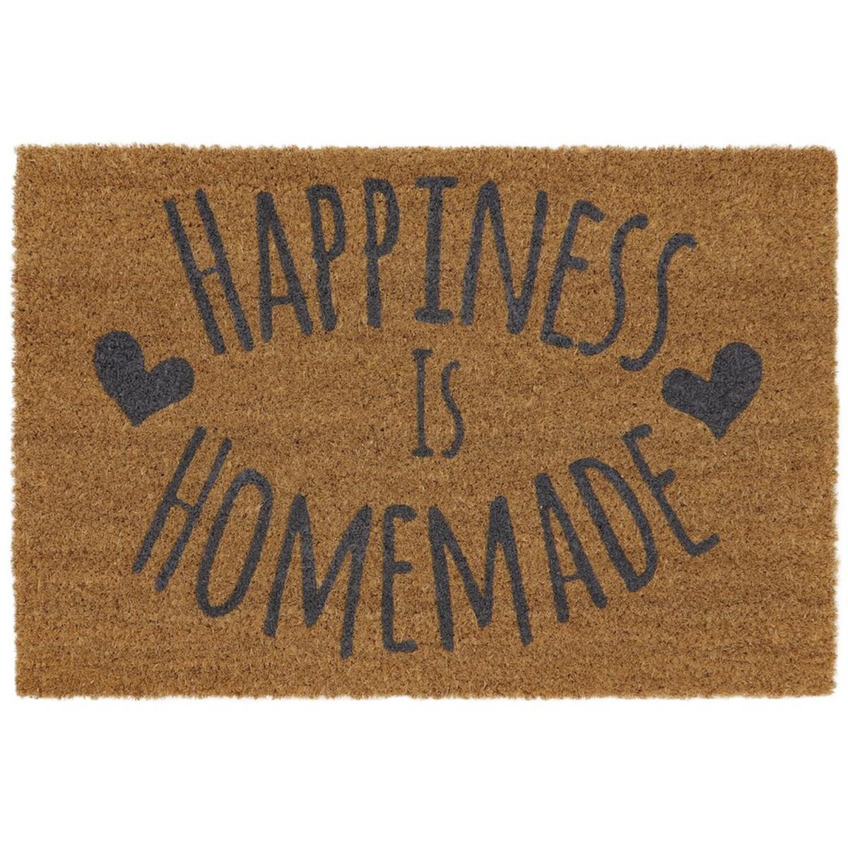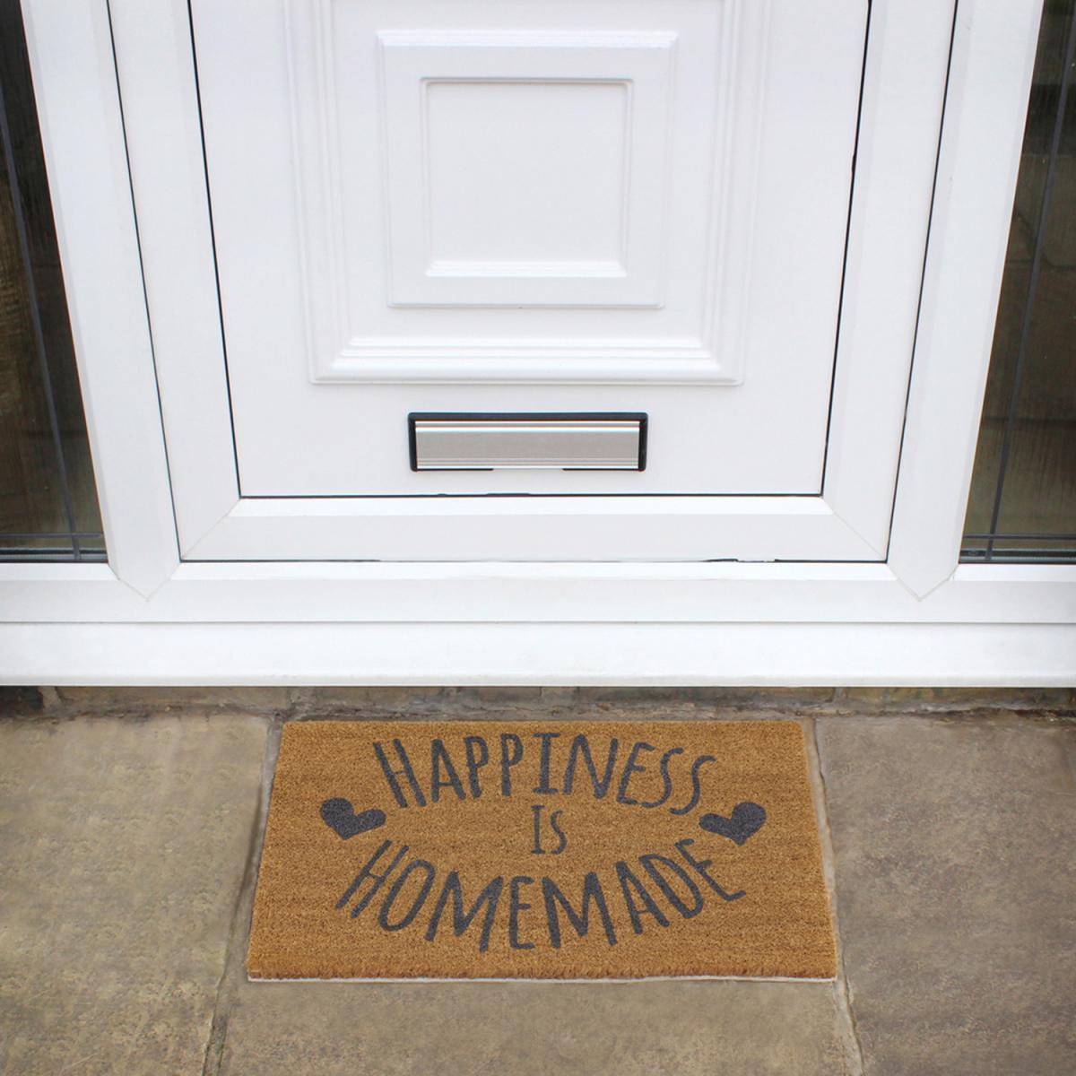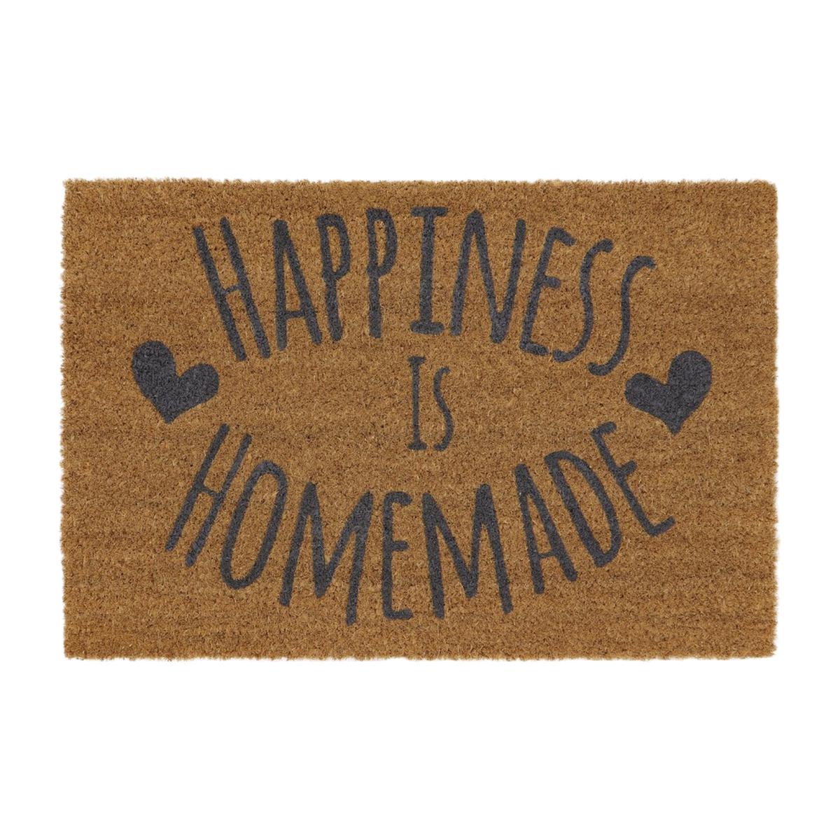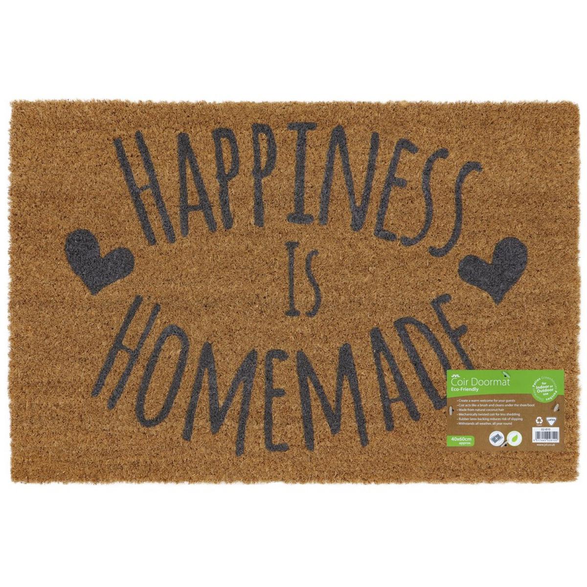 Eco Friendly Backed Coir Entrance Door Mat, Happiness Design - Grey