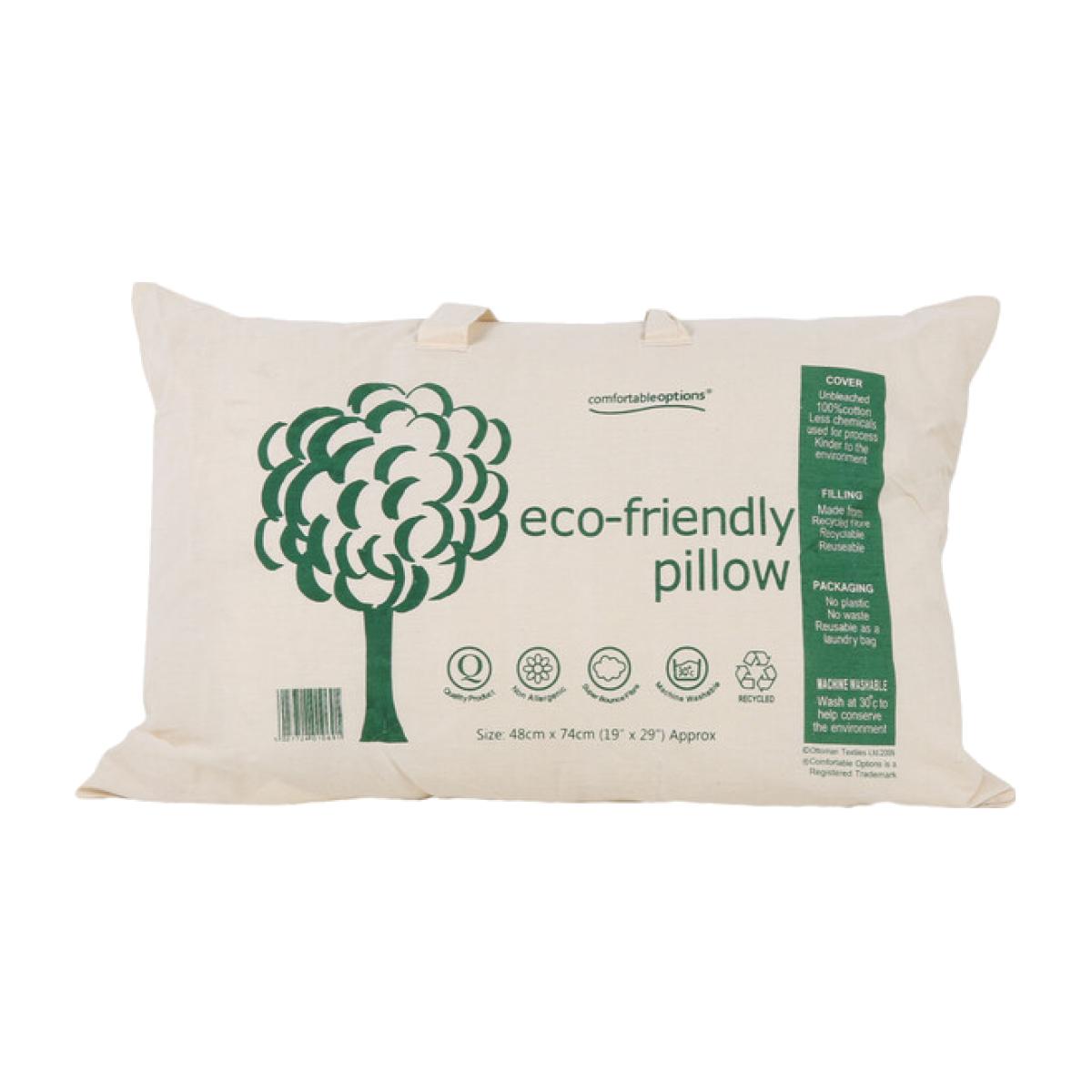 Need a new pillow but want to keep conscious of your carbon footprint? This Eco-Friendly Pillow contains no plastic, not even with the packaging, is made from recycled materials, and is supplied in a reusable laundry bag. Made with a 100% cotton cover and a 100% recycled polyester filling, this non-bleached pillow also has anti-allergen properties, making it ideal for those with sensitivities.
