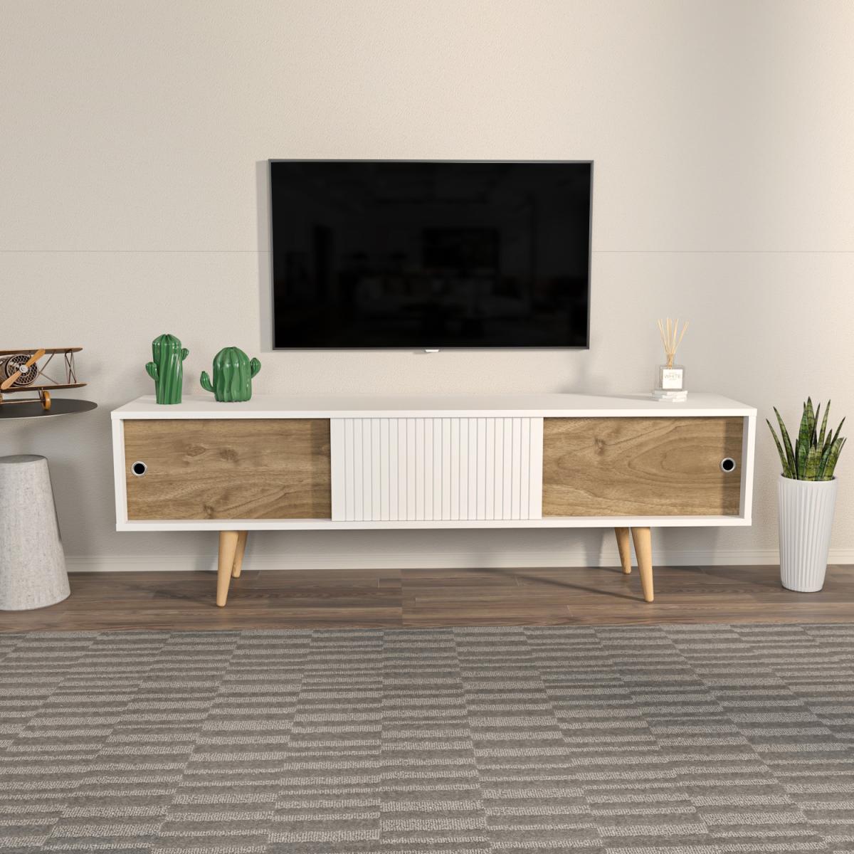 The media stand is made of 18 mm thick quality melamine coated particle board and banded with first-class PVC edge banding tape. The stand is also enhanced and strengthened with the solid wood leg which makes it sturdy and durable. The product will be delivered to the customer in the original package as disassembled. It is designed to be assembled by the customer easily using simple household tools like a power drill. For fast and error-free installation, product parts are numbered with stickers in accordance with the assembly guide.