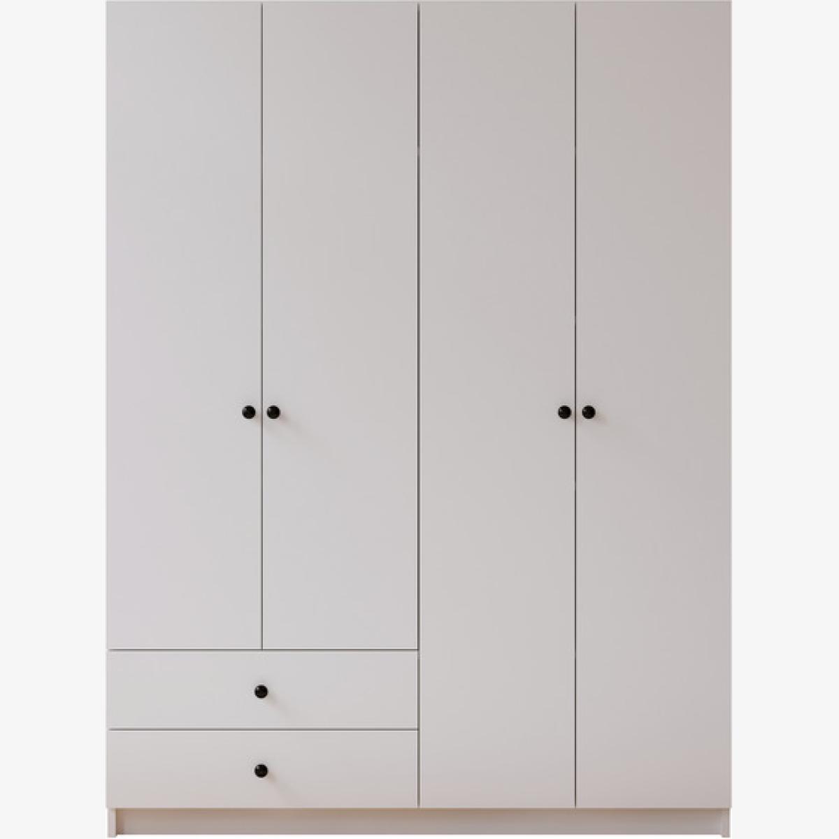 This compact wardrobe makes your clothes or daily accessories easy to access. It will provide a perfect storage solution and add modern touch to your existing home. Made from quality board which ensures it sturdiness, durability and long service life. Featuring 4 doors and 2 drawers with three hanging rails, offering you ample space both for your longer outfits and other folded clothes or accessories, such as sweaters, jeans, hats, hand bags, etc. Colour White Dimensions Width120cm,Height180cm,Depth45cm. Delivered flat packed in 2x Boxes. Total Gross Weight73.5kg.!!!IMPORTANT INFORMATION!! Due to the size and the weight of this item, it is shipped out flat packed with 2MA N White Glove Guaranteeed Next Day Delivery Service to your room of choice with PANTHER logistics. After placing your order you can book your delivery by following the email instructions from PANTHER Logistics. !! Once the item is dispatched from our warehouse , cancelation or change of delivery date is subject to 50 charge!! Please note that items can not be left in a safe place or with a neighbour. If you are not happy with this service please let us know before item is dispatched and we will send your item with a standard 2man 7-10 days delivery service instead of next day service.