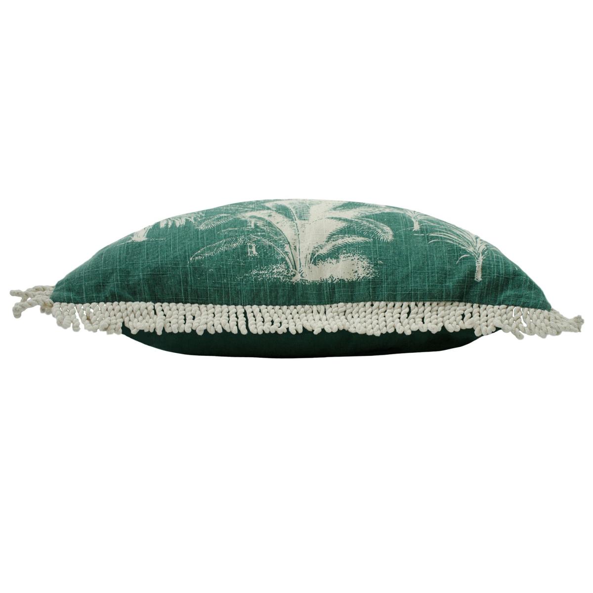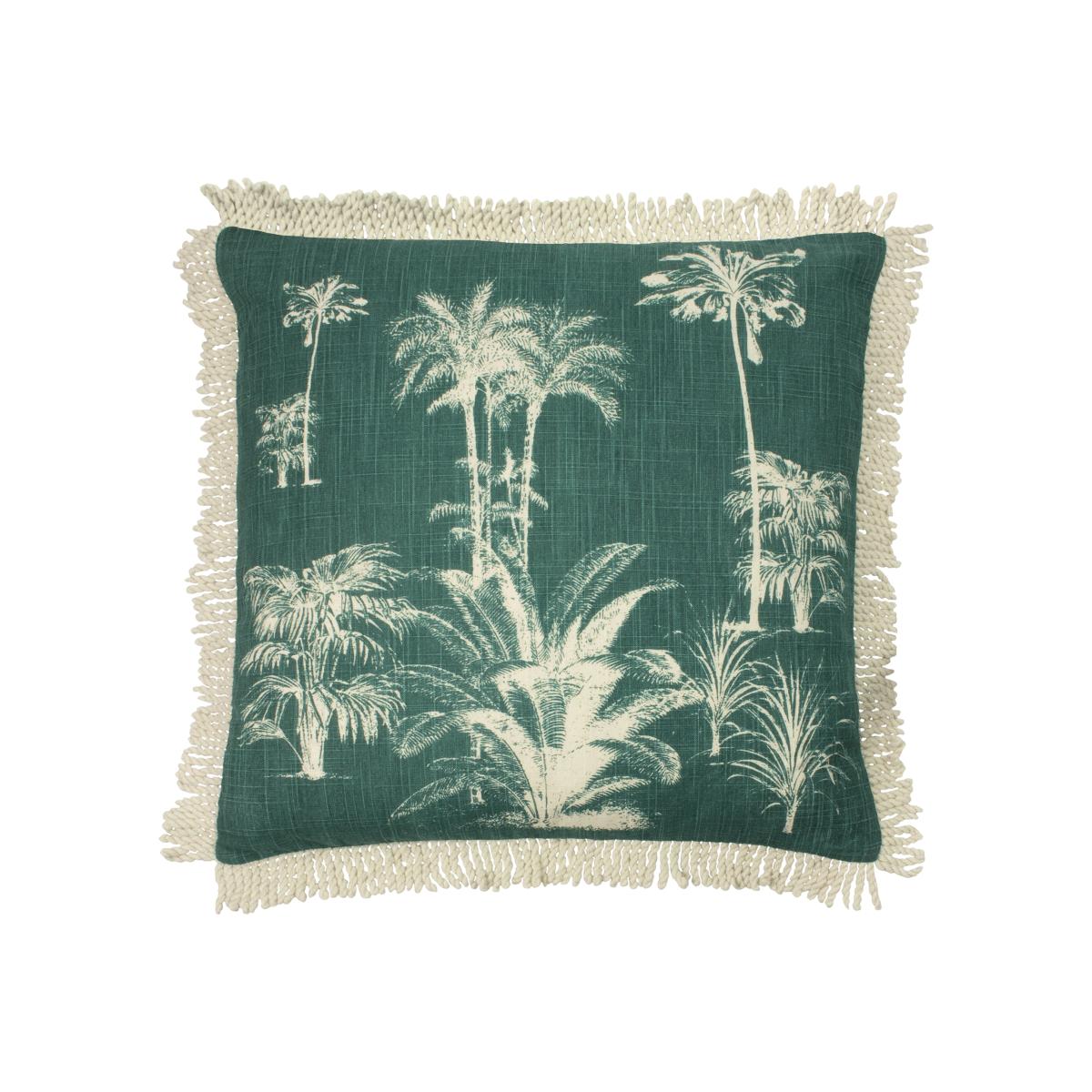 Featuring a palm design printed on a cotton slub fabric. Complete with a cotton slub reverse, braided cotton fringe edge and hidden zip closure. Made of 100% Cotton, making this cushion super comfy and durable. Machine Washable at 30 Degrees and Line Dry Only. Insert Included.