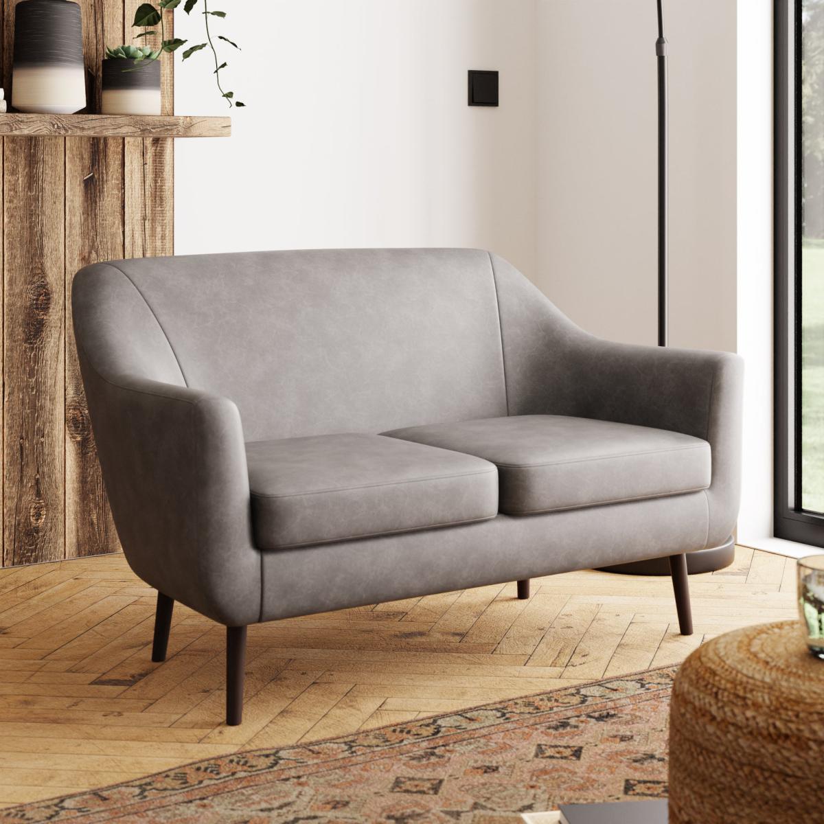 Eddie Distressed Faux Leather 2 Seater Compact Tub Sofa Grey