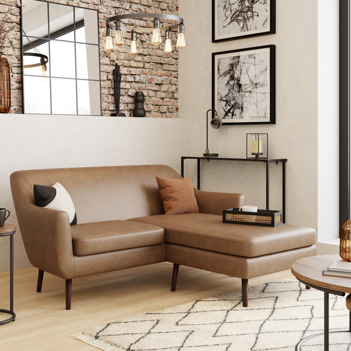 Eddie Distressed Faux Leather Compact Corner Chaise Mocha