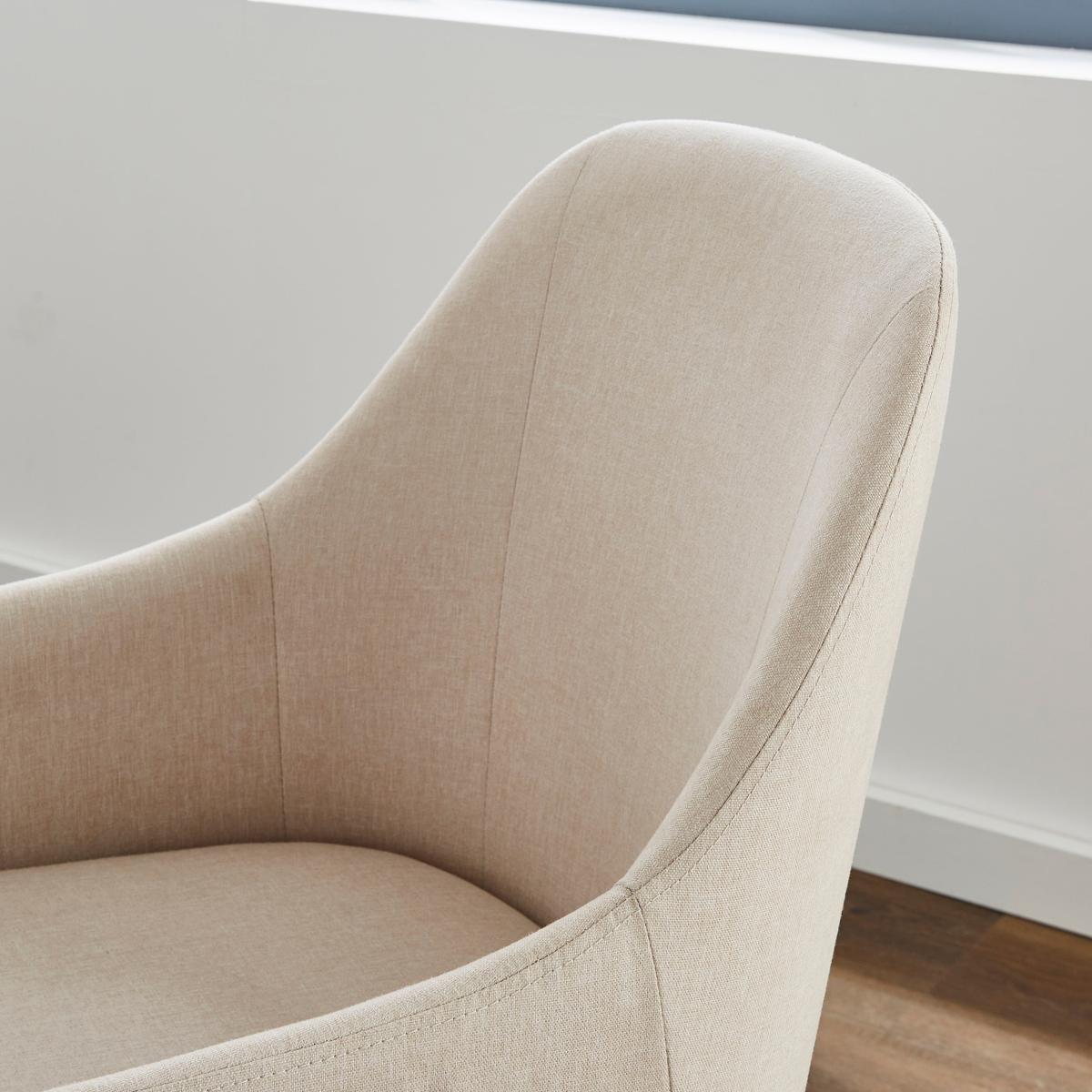 The Eddie Luna fabric carver is a great addition to both modern and rustic dining spaces, thanks to its simple yet stylish design. I love its neutral tone, which offers versatility and effortless coordination with a range of colour schemes and tabletop styles. This chair works well in minimalist interiors when paired with natural wood or concrete finishes, but it can also elevate a Scandinavian-inspired setting with layered textures. Practical styling tips include pairing it with a sleek, contemporary table for a clean look, or mixing it with more tactile or vintage pieces for added charm. Its understated elegance makes it a flexible choice that can adapt to both everyday dining and more formal occasions.