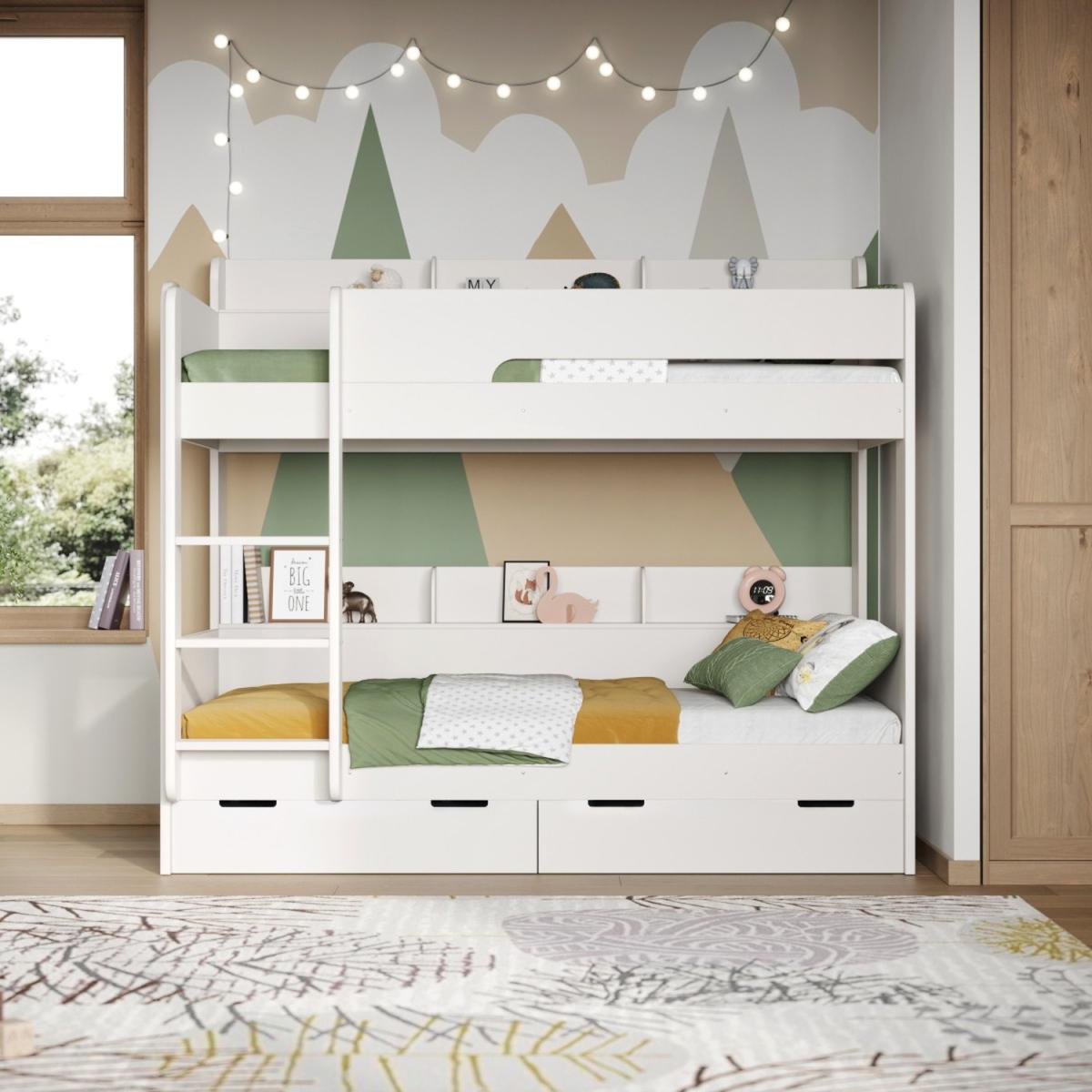 The Flair Eddie Storage Bunk Bed perfectly blends functionality and style for modern living spaces. This innovative bunk bed maximises space utilisation without compromising comfort or aesthetics. Crafted from high-quality wood, this bunk bed features a sturdy frame constructed from high-quality materials, ensuring long-lasting durability and stability. Its sleek and contemporary design effortlessly complements any interior decor, making it an ideal addition to bedrooms, guest rooms, or dormitories. What sets this bunk bed apart is its ingenious storage solutions. Equipped with multiple spacious drawers and shelves, it offers ample room to keep belongings neatly organised and easily accessible. From clothes and bedding to books and toys, you'll have everything within reach while maintaining a clutter-free environment. Safety is paramount, especially for children, and this bed prioritises this aspect. With built-in safety features such as guardrails and a sturdy ladder, parents can have peace of mind knowing their little ones are safe and secure during sleep and playtime. Assembly is a breeze, thanks to its user-friendly design and detailed instructions. It accommodates standard twin mattresses, providing comfortable sleep for two while optimising the use of space. Upgrade your living area, combining practicality, style, and safety in one impressive package. Discover the perfect solution for maximising space and enhancing organisation without compromising design or quality. Available in three stylish colours - grey, oak, and white.