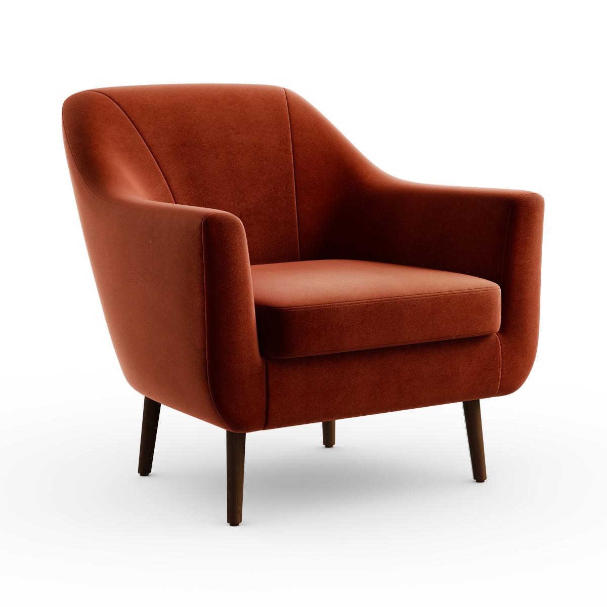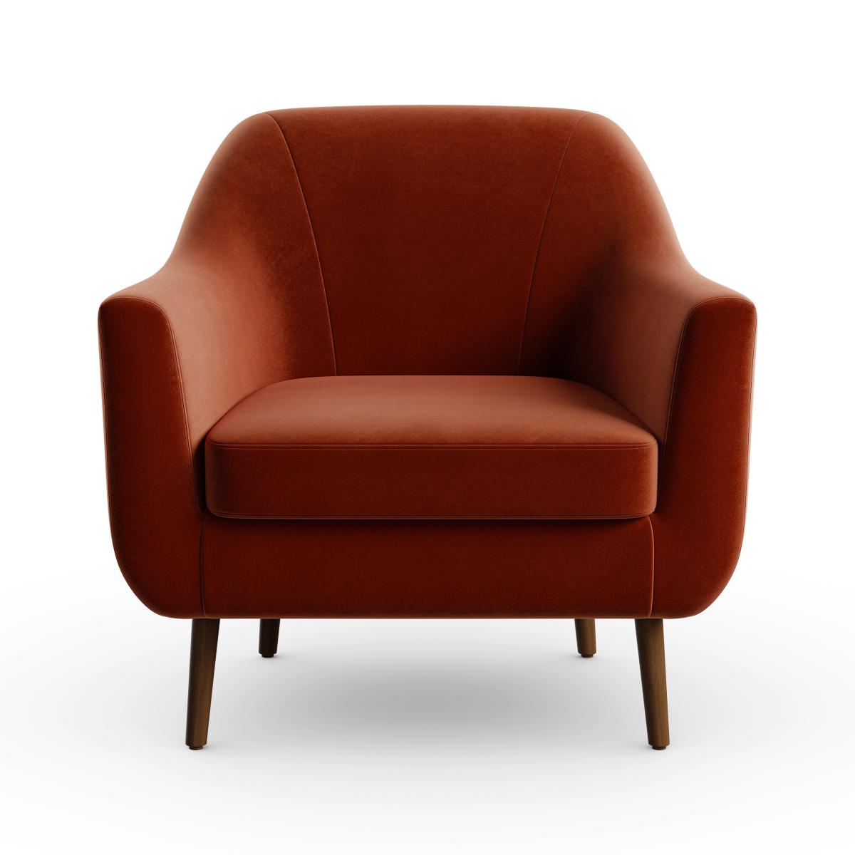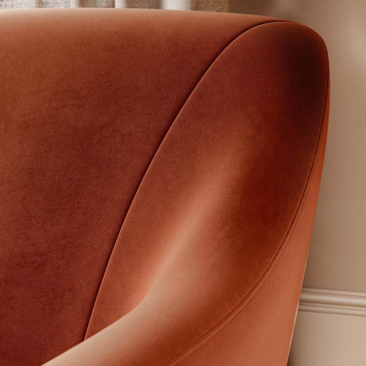 I love the Eddie tub armchair for its bold, warm tone and inviting silhouette, making it a real statement piece in any living space. Its velvet upholstery adds a touch of luxe and texture, perfect for both contemporary and retro interiors. This chair works particularly well in a neutral setting, such as beige, cream, or grey schemes, where it can become the focal point. For practical styling tips, pair it with patterned cushions or a cosy throw for added comfort and visual interest. It also looks great in living rooms, bedrooms, or reading nooks where its distinctive colour can really stand out without clashing with other colours - just keep surrounding furniture simple and understated to let the orange pop.