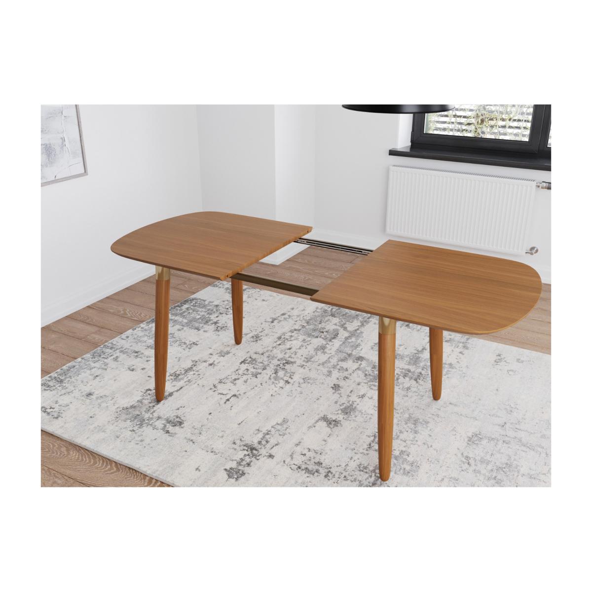 The Edelweiss dining table is a wonderful choice for gathering with family and friends. With its generous size, seating up to 8 people, it provides ample space for comfortable dining. The fabulous retro style of the table will add a unique and nostalgic touch to your dining area. The rectangular top with softly curved sides creates an interesting visual appeal. The warm ash veneer adds a natural and inviting element, enhancing the aesthetic of the table. The shiny brass accents provide a striking contrast to the warm ash veneer and add an elegant feel. The table benefits from a sturdy metal frame and strong rubber wood legs. This ensures durability and stability, making the dining set reliable and long-lasting. The Edelweiss dining table is perfect for creating an inviting space for memorable dining experiences.