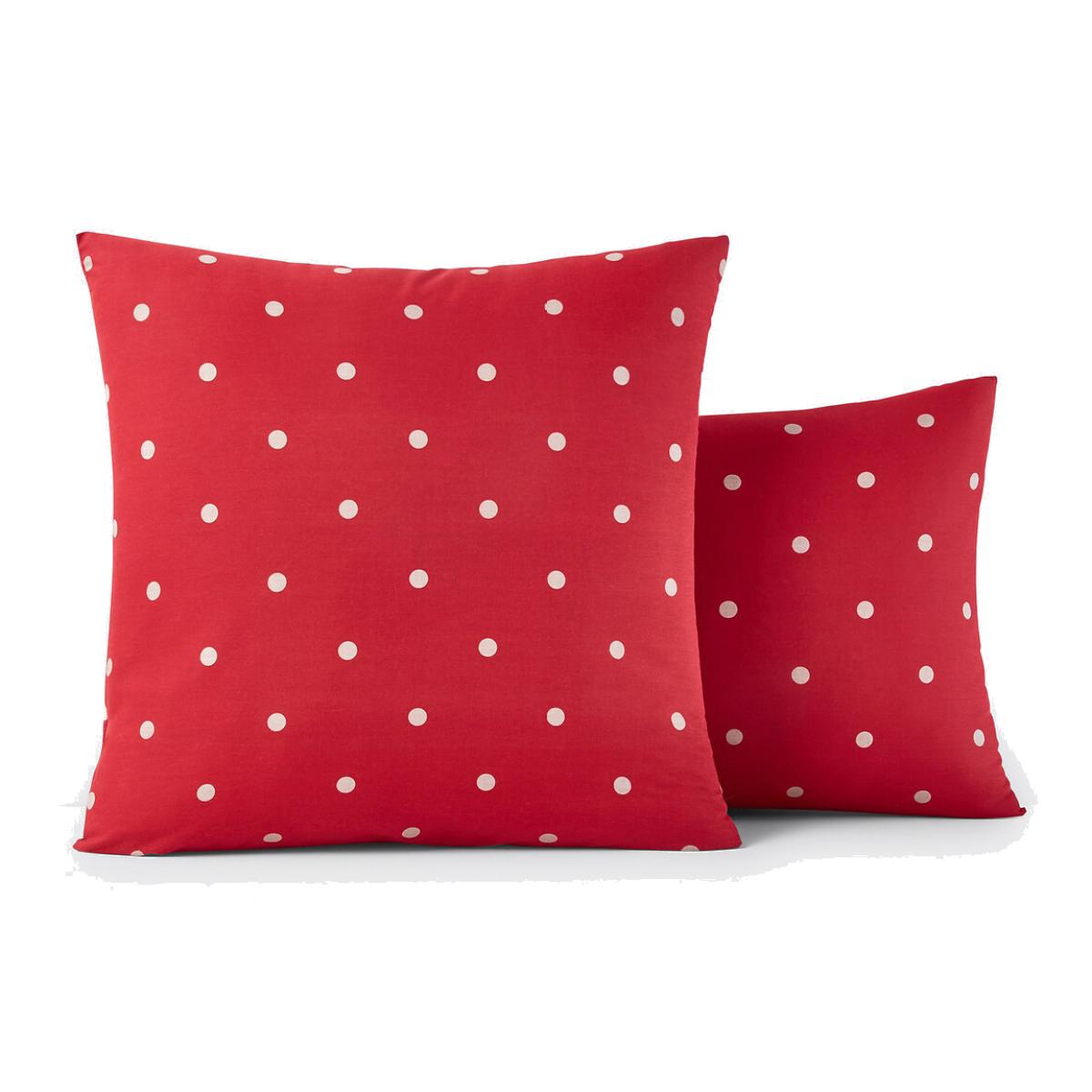 Edelweiss pillowcase. You'll be as snug as a bug with the lovely, soft comfort of this stylish 100% cotton Edelweiss printed pillowcase..Cotton is part of our daily lives. We love it for its suppleness and softness. Easy Care, it is ideal for the beds of young and old alike!Product Details • 100% cotton • • Beige polka dots on a red background. Care Advice • Machine washable at 60°C • By washing your laundry at 40°C instead of 60°C, you limit energy consumption. Dimensions • 50 x 70cm: Rectangular pillowcase • 63 x 63cm: Square pillowcase • OEKO-TEX® Standard 100. Standard 100 certification by OEKO-TEX® tests textile products for harmful substances via an independent, international label.