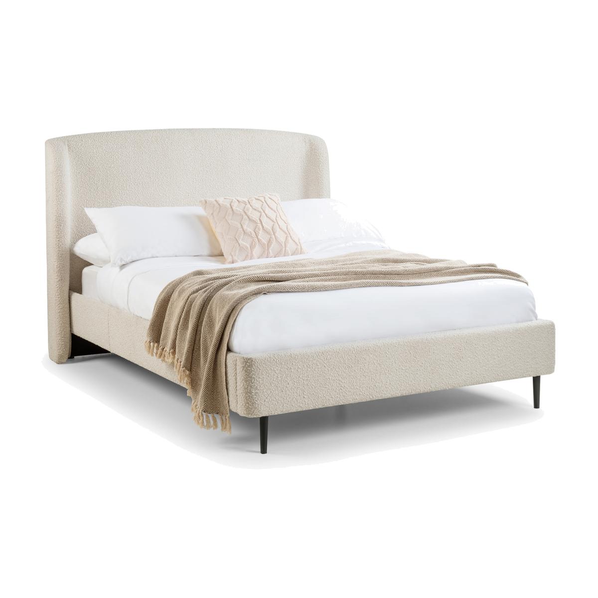The Eden Boucle Bed excels in class and elegance bringing a sense of style and comfort to any modern bedroom space. Featuring a curved headboard and finished in a stunning ivory boucle with black legs.