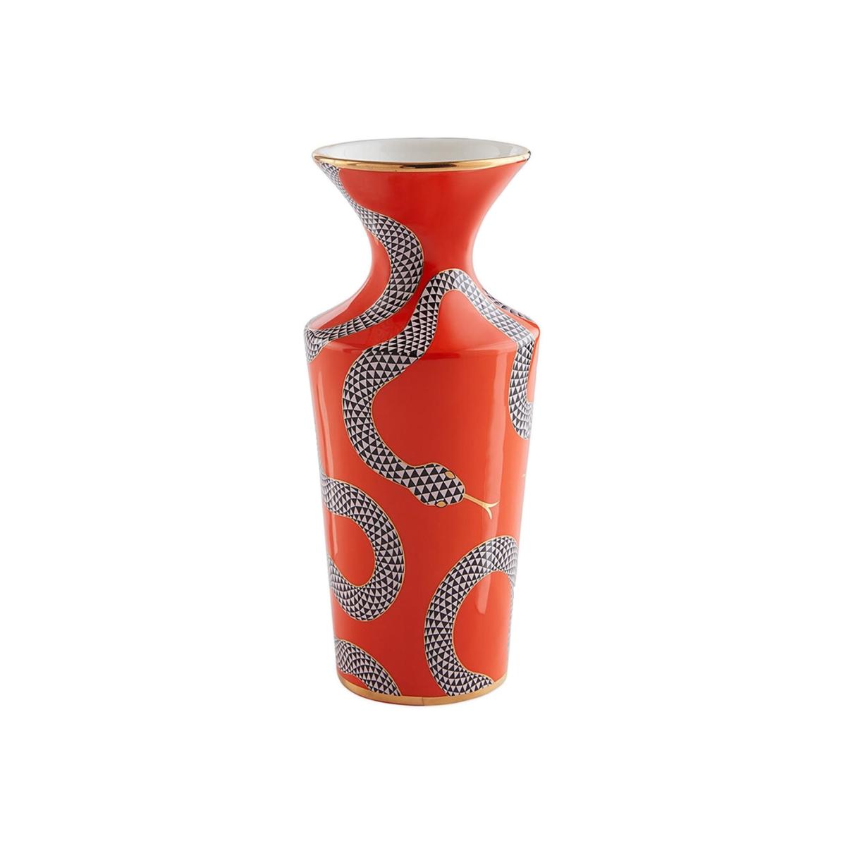 Jonathan Adler's Eden vases are a visually appealing addition to any surface – be it a table, shelf, or a mantel. The vases are decorated with our signature serpents, which adds a unique touch to their overall aesthetic. The pop-toned hues make them stand out, while the sparkling gold accents elevate their glamour quotient. You can mix and match the vases with others to create a unique look or keep the collection together for an added impact.