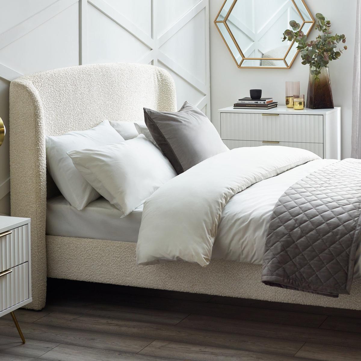 I love this bed frame for its soft, neutral tone and textured boucle finish, which makes it versatile across a range of interior styles. It suits both contemporary spaces that benefit from a tactile, cosy element and more classic, subdued bedrooms. The Ivory boucle adds warmth and subtle elegance without overpowering the room. Practical styling tips include pairing it with layered bedding in muted tones or adding plush cushions and throws for a cosy, inviting look. It works particularly well with neutral tones, wooden accents, or even a splash of colour through accessories to create a balanced, stylish bedroom environment.