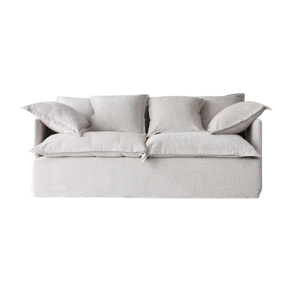 I love this large seater sofa for its versatile fabric and understated elegance, making it a great anchor piece for various interior styles. The neutral fabric lends itself well to both contemporary and traditional schemes, allowing you to easily customise with cushions and throws. It’s perfect for creating a cosy yet refined lounge, especially in open-plan or lived-in spaces. Practical styling tips include pairing it with textured cushions for visual interest or adding a statement armchair nearby for a layered look. Its generous proportions also make it ideal for family living or accommodating guests, blending comfort and style effortlessly.