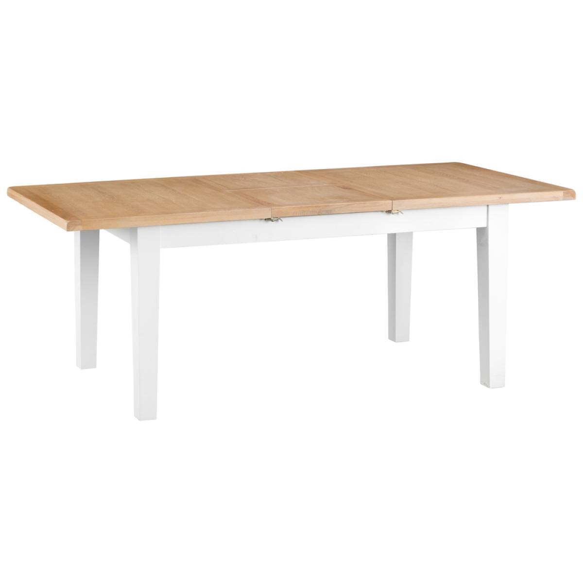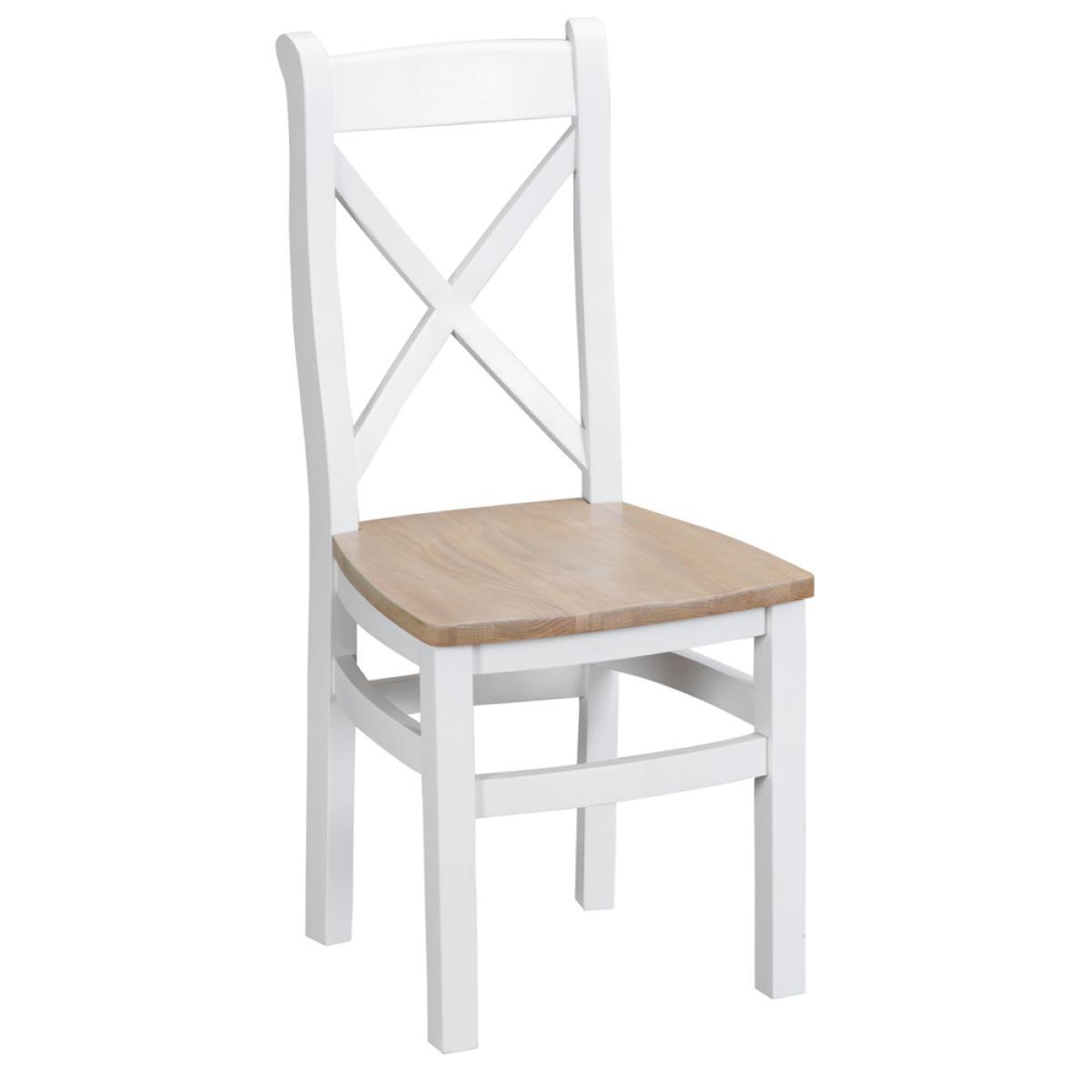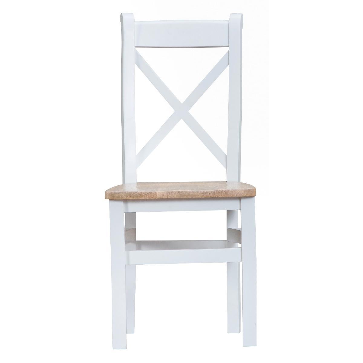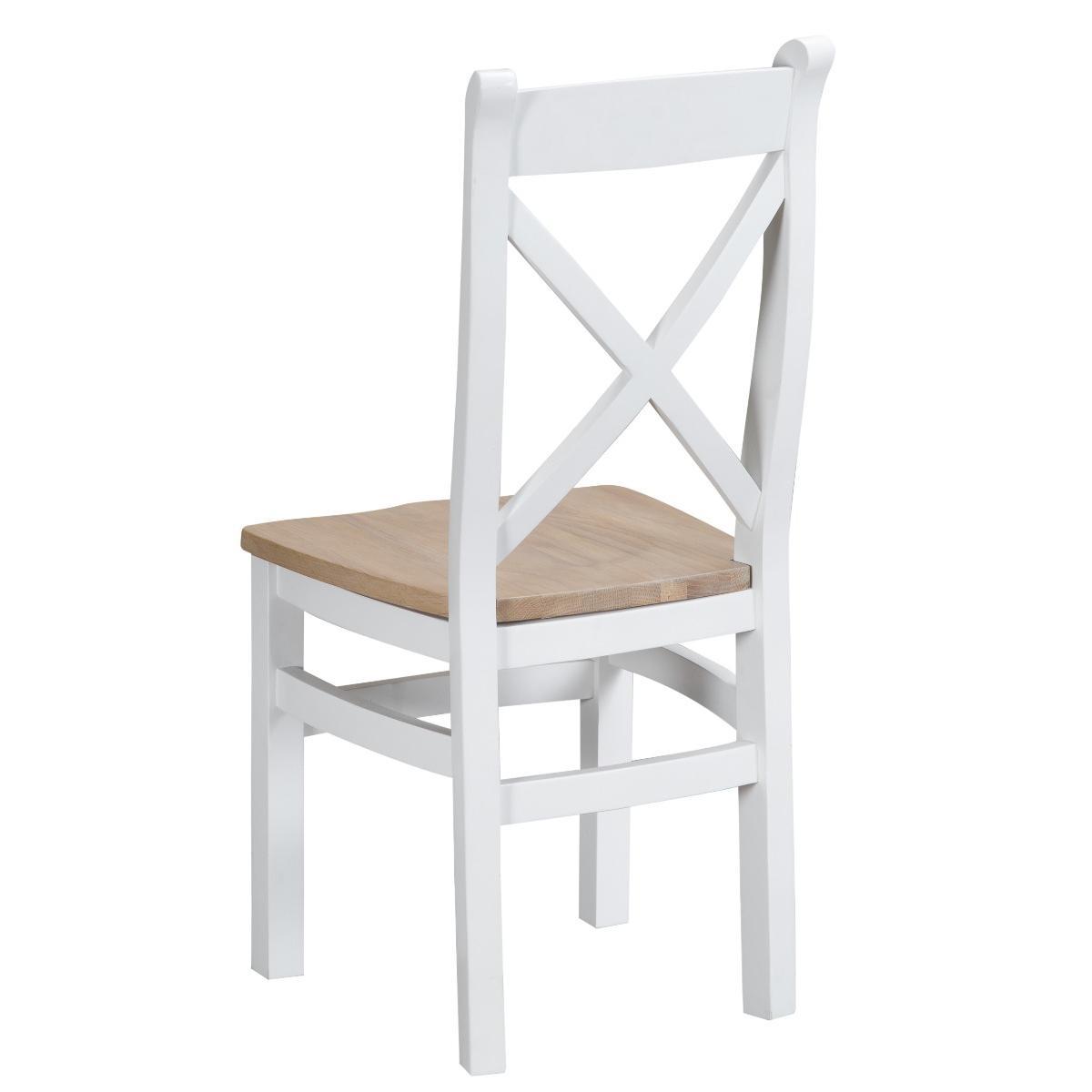 In a white and natural oak colour combination, elegant and versatile Eden Extending Table with its fresh painted white frame and minimal design features a contrasting soft lime washed oak tabletop that extends via a smooth and effortless butterfly mechanism. Teamed with the complementing Cross Back chairs, with their matching natural oak seats, it’s a set ideal for smaller family dining, that still offers the option of a larger option when needed. Crafted in quality solid oak for style that lasts. A white painted finish to the set adds charm. The table extends via a smooth butterfly mechanism via an aluminium ball-bearing runner for a larger dining option. Table extends from 160cm to 210cm. Table reaches 78cm in height. Chairs are sturdy and supportive, with high crossed backs. Stylish and versatile, for easy styling into all types of homes. Also available: The 160cm Eden Extending Table with Cross Back Chairs with Fabric Seats, Ladder Back Chairs and Ladder Back Chairs with Fabric Seats