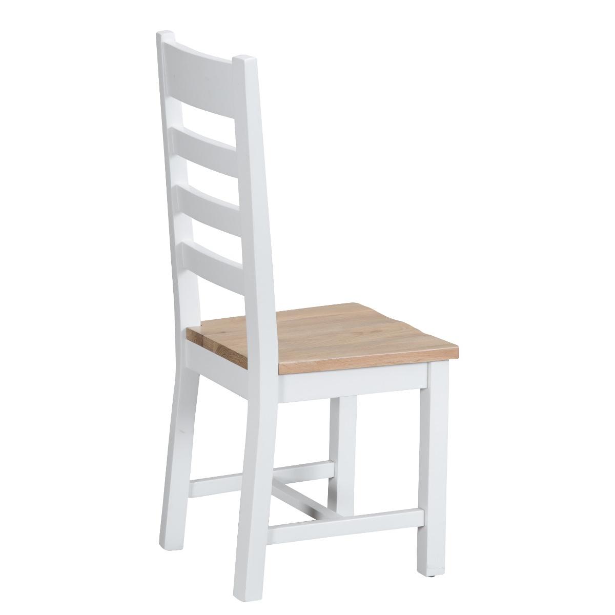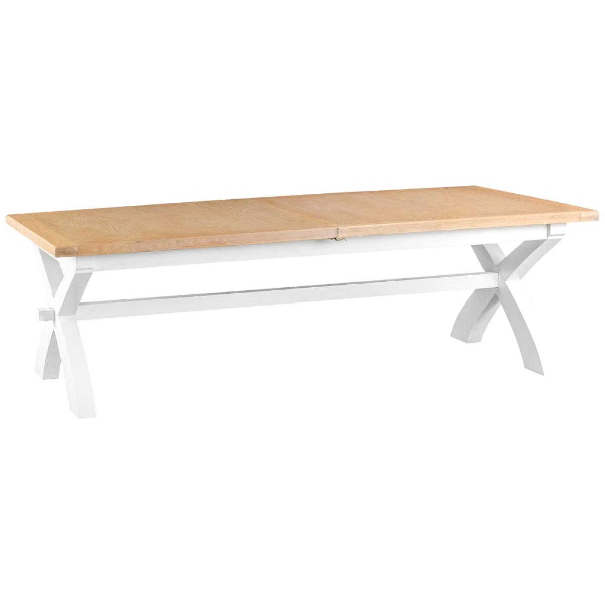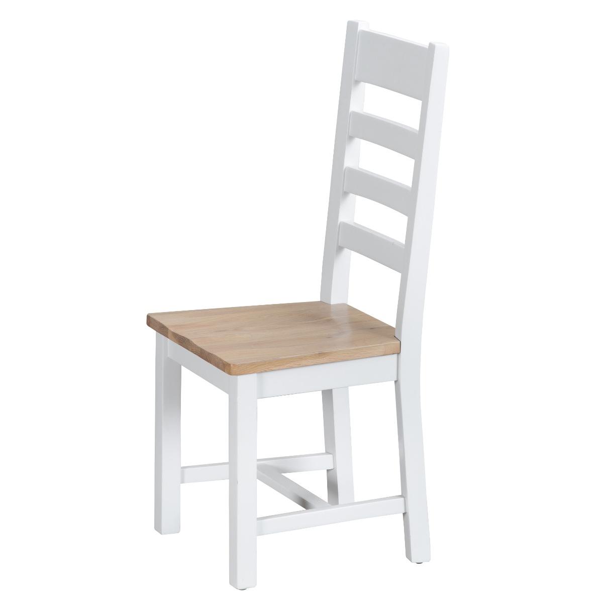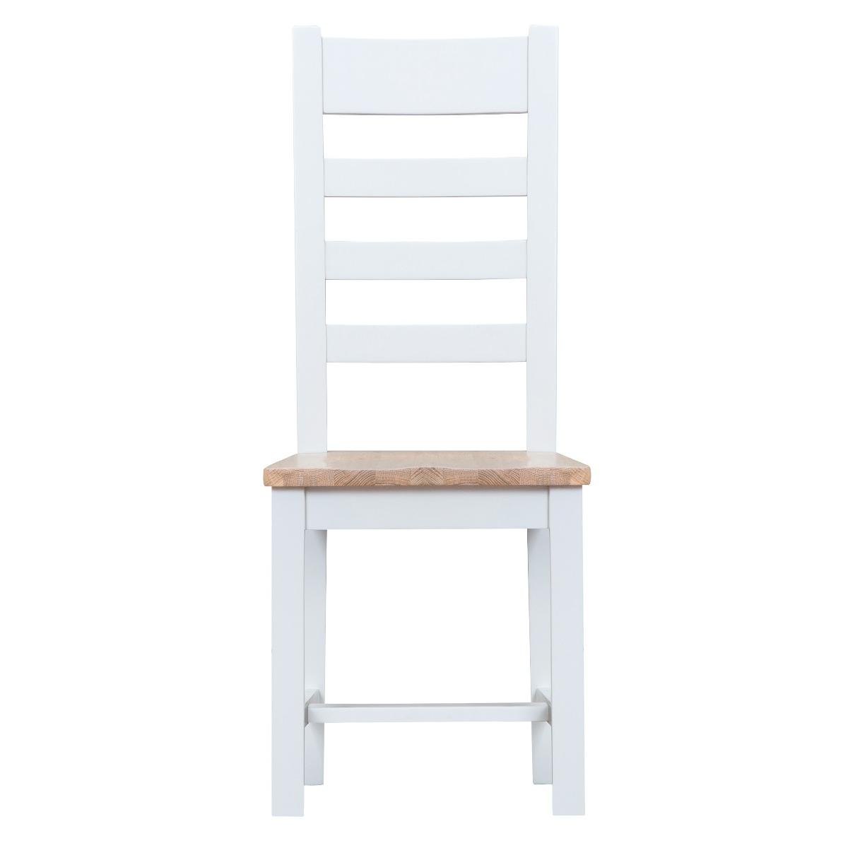 In fresh and minimal white and natural oak colour combo, the large and charming 250cm Eden Extending Table with its sturdy painted white frame features a soft lime washed oak tabletop that extends an additional 50cm via a smooth and effortless butterfly mechanism. Teamed with the supportive Ladder Back chairs, with their matching oak seats, it’s a set ideal for larger dining spaces, which also offers the option of an even longer length. Designed for full family homes, and those that love to host. Crafted in quality solid oak for style that lasts. A white painted finish to the set adds charm. The table extends via a smooth butterfly mechanism via an aluminium ball-bearing runner for a larger dining option. Table extends from 250cm to 300cm, for the largest dining option. Chairs are sturdy, with high crossed backs for support. Also available: The 250m Eden Extending Table with Cross Back Chairs with Fabric Seats, Cross Back Chairs and Ladder Back Chairs with Fabric Seats
