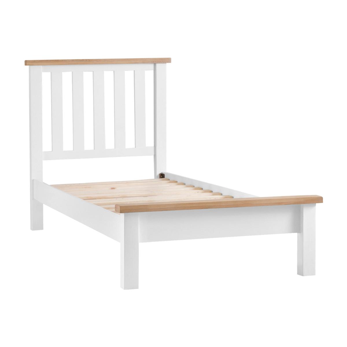 Eden Oak and White Single Bed features a classic design to enhance any bedroom setting. Crafted from durable wood, the two-toned bed features a stunning slatted design with a white painted finish and lime-washed oak tops and is complete with sturdy slats for optimum comfort and support. Sturdy and stylish oak and white Single Bed Classic slatted design on headboard suits any interior White painted finish contrasting with lime washed oak tops Durable slats for maximum comfort and support Also available in Double, King and Super King Complements other items in the Eden Oak and White Collection