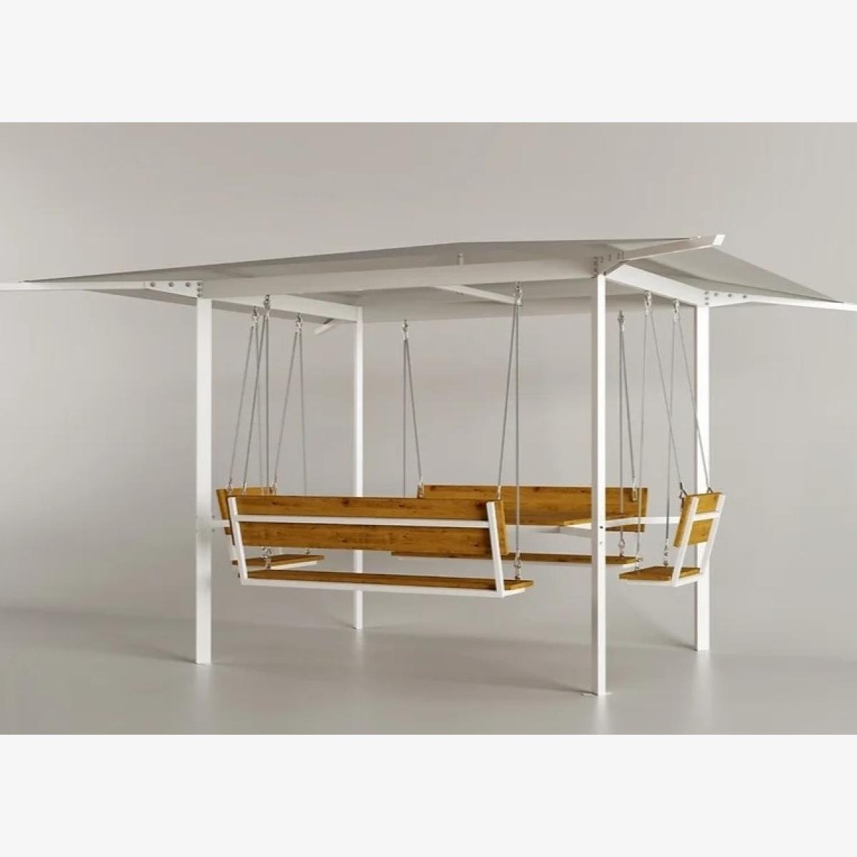 Transform your outdoor space with the elegant 8-Seater Swing Table from Eden Swings. This Swing table has everything you need to create an entertainment area like no other. The swing features smooth edges, a heavy-duty construction, and can be tailored to your exact tastes so you can get the perfect seating area. Available in two configurations to suit your space and style needs. Ideal for large outdoor gatherings, this swing table offers ample seating and a unique design that enhances any garden or patio. Rectangular Configuration:. *Overall Size: 3100 x 4200mm *Seating: 2 x 3 seater benches, 2 x single seats. Square Configuration:. *Overall Size: 3700 x 3700mm *Seating: 8 x single seats Fully customisable- make it your own and choose from the following options:. *Frame Colors:Choose from sleek white, black, or gray, available in both gloss and matte finishes. *Wood Choices: *Light Wood:Idigbo and African Walnut *Dark Wood:Utile *Reddish Wood:Sapele *Seats:Available with or without backrests for added comfort and versatility * This Garden Table Swing can be installed on hard ground or grass DIMENSIONS:. *Overall Height - 2.8m *1 Seater Bench - Width 55cm *2 Seater Bench - Width 1m *3 Seater Bench - Width 1.6m *Safe Load - 700kg per bench Price includes delivery and installation/assembly..