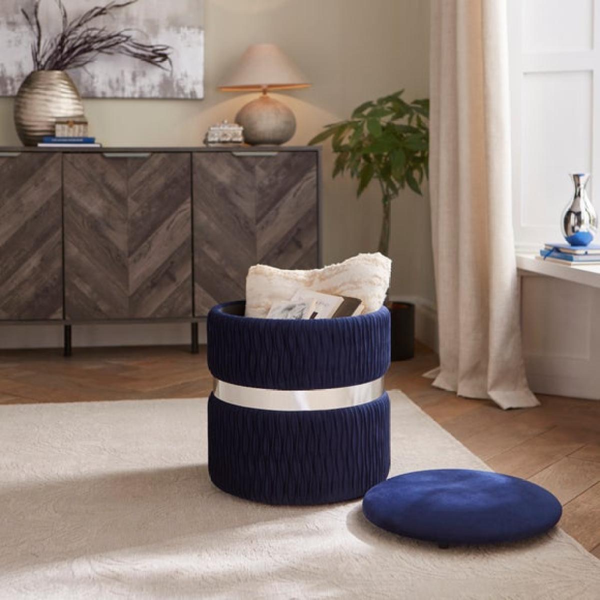 I really like this velvet footstool as it adds a touch of elegance while remaining practical. Its rich navy tone makes it versatile for both modern and traditional interiors, especially in schemes with deeper colour palettes. The storage feature is a clever bonus, perfect for keeping magazines or cosy throws tucked away but within reach. Style it alongside a plush armchair or as an accent in a hallway to create a handy, stylish floating seat or footrest. For a polished look, try pairing it with other velvet accessories or textured cushions to bring a layer of depth and warmth to the space.