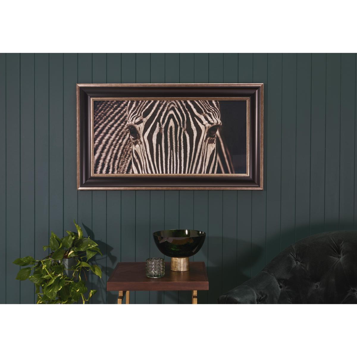 Our Edgar Framed Print is a must for anyone who appreciates stunning nature photography. Carefully cropped, this gorgeous image depicts the zebra as watchful, poised and dignified. The detail is incredible, the subject matter quite mesemerising. An intimate portrait of one of Africa’s stunning inhabitants. Beautifully framed photograph. Cropped format accentuates the zebra’s unwavering gaze. Monochromatic with a warmth to the tones. Black frame bordered in gold. A striking piece for either classic or contemporary homes. An exceptionally fine nature photograph. Dimensions. Width: 118cm (47inches). Depth: 5cm (2inches). Height: 68cm (27inches).