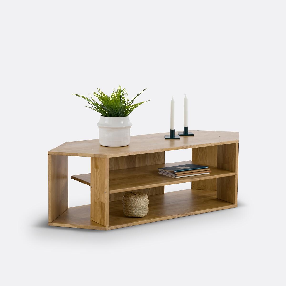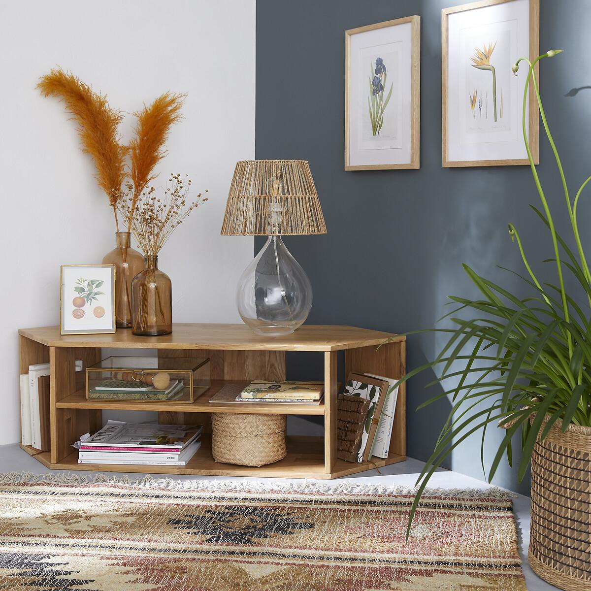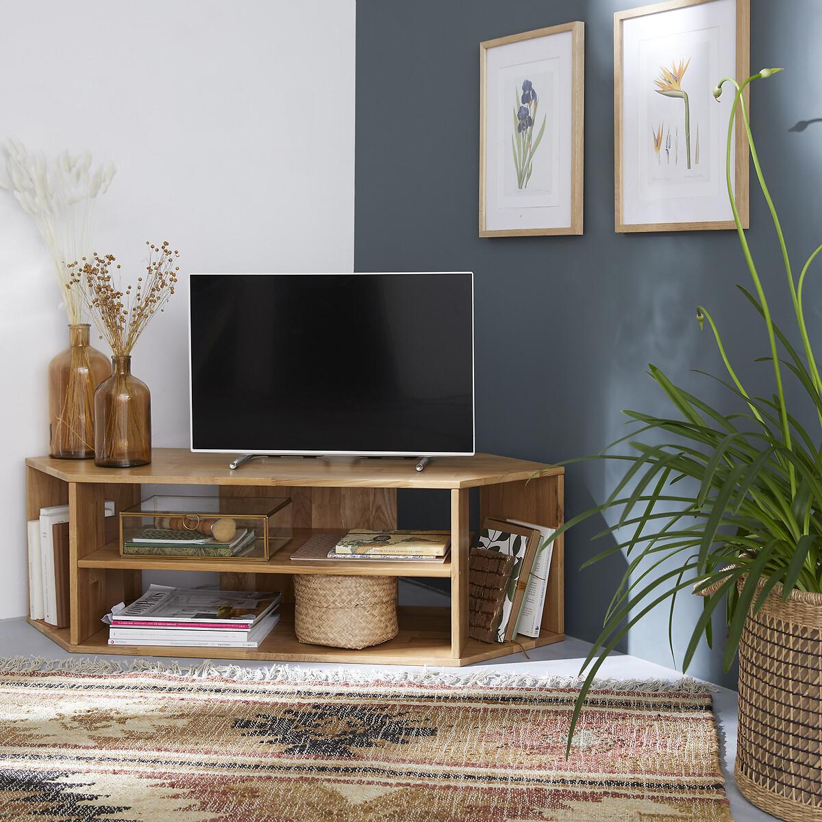 Made in Europe and in solid finger-jointed oak wood: this is Edgar. A practical TV cabinet when you want to save space in lost corners of the living room. An exclusive by La Redoute Interiors. Product Details • Solid joined oak with an oiled finish • Inner shelf forming 2 compartments • Open back to facilitate the passage of cables • Made in EuropeDimensions Overall • Width: 114cm • Height: 35cm • Depth: 39.5cm. Usable dimensions • Compartment: L74 x H15 x D38cmDelivery:. Assembly required. Available for home delivery. Note! Please check that all access points are large enough to accommodate your delivery (doors, stairs, lifts). • Made in Europe. • WOOD FROM SUSTAINABLY MANAGED FORESTS. FSC® certified wood comes from forests that are environmentally, socially and economically well managed. Dimensions and weight of parcel1 parcel • L122.5 x H9 x D46cm, 18kg