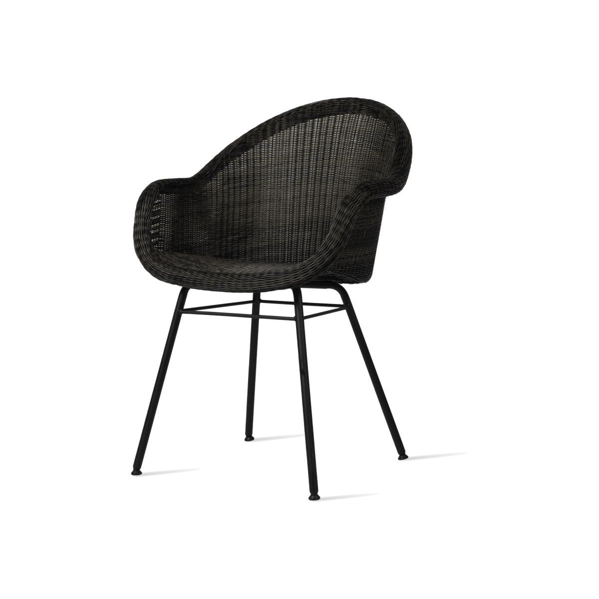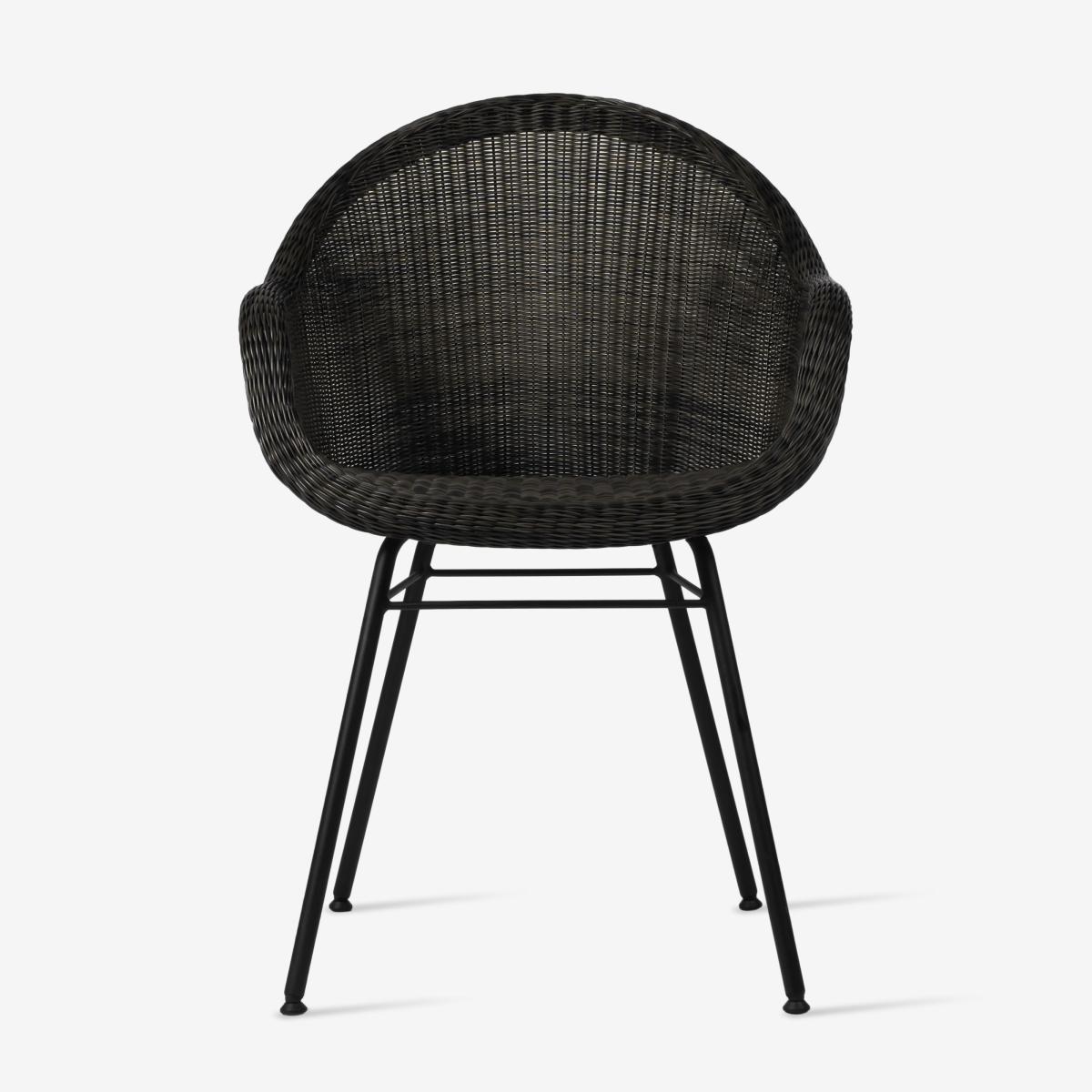 The Edgard armchair combines delicate weaving with an elegant steel base for a contemporary mix of materials. Hand-crafted in Indonesia, the shell is made of meticulously hand-woven polyethylene wicker. This durable, hard-wearing material perfectly reproduces the warm and authentic aspect typical of natural fibre braiding. The perforated material provides great visual lightness. Edgard stands out with its attentive, careful design, the refinement of its finishes and its high quality of manufacture. The black colour adds a modern, current style to rattan. Synonymous with exceptional seating comfort, high quality and durable materials, Vincent Sheppard furniture places craftsmanship at the heart of its DNA. Each Vincent Sheppard piece of furniture is handcrafted in Indonesia by the most highly qualified craftsmen. The knowledge and skills of local artisans elevate these creations to the rank of works of art.