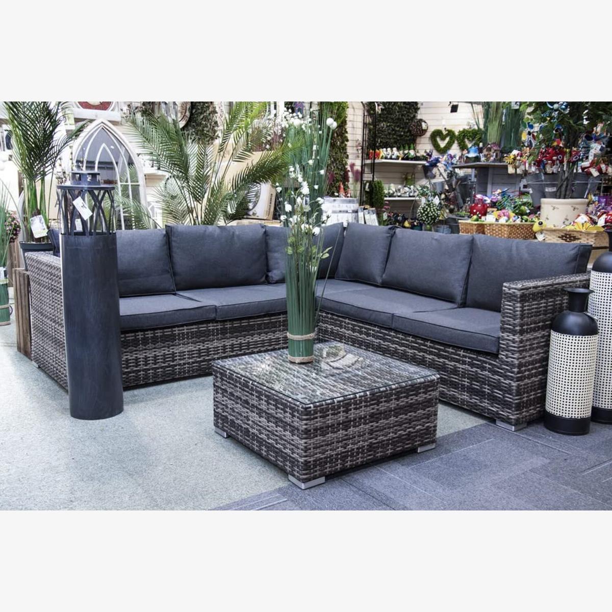 Edgerton Rattan 5 Seater Corner Sofa Set - Grey