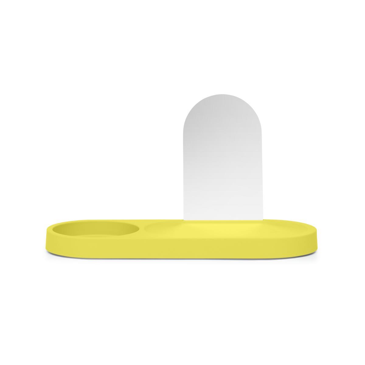 PLEASE NOTE: Edison the Petit II wireless lamp NOT INCLUDED (sold separately). This large tray is highly practical. Equipped with a detachable mirror, you can use it as a trinket bowl to store all your small items in: keys, money and mobile in the entrance, jewellery and make-up in the bathroom, etc. The ABS tray is coated in a rubber finish that is very soft to the touch. The mirror is detachable: it slides into a groove located on the back of the tray in which you can also place mail, photos or post cards, etc. The tray can be placed on a piece of furniture or attached to the wall like a shelf (invisible wall fastening made from steel included). To the left of the tray, the round space can house an Edison the Petit II wireless lamp (PLEASE NOTE: lamp NOT INCLUDED, sold separately). A hole on the lamp space lets you pass the lamp charging cable through. This lets you recharge the lamp while it remains on the shelf.