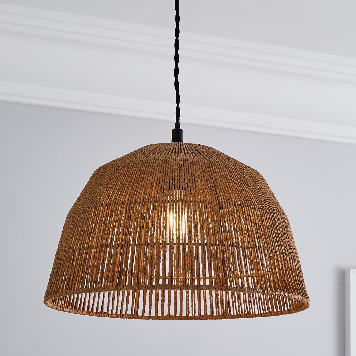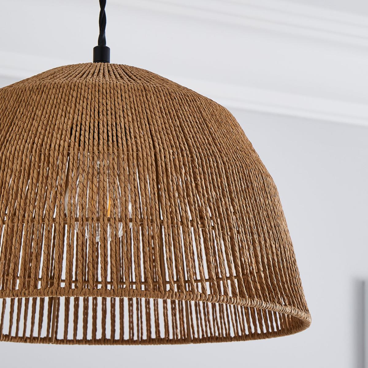 I love the natural, earthy vibe of this string pendant shade-it brings warmth and texture to a space without overwhelming. It works particularly well in interiors with a boho, Scandi, or coastal aesthetic, adding a touch of relaxed sophistication. Practical styling tips include hanging it over dining areas or in a cosy corner to create an intimate atmosphere. Pair it with warm-toned decor and other woven or wooden accents to enhance its organic appeal. Its size and shape are versatile, making it a great focal point in both modern and more traditional settings, especially when combined with filament bulbs for added charm.