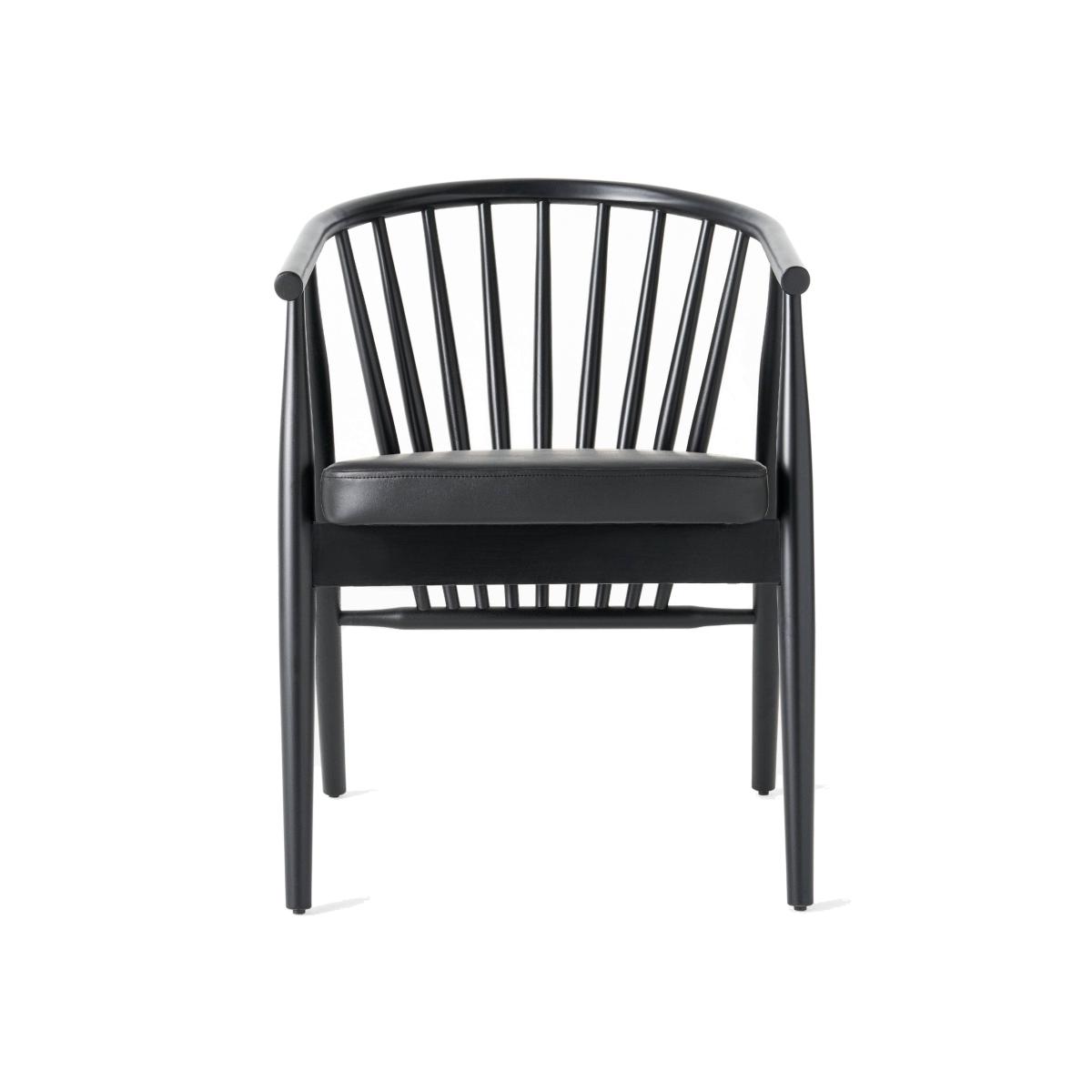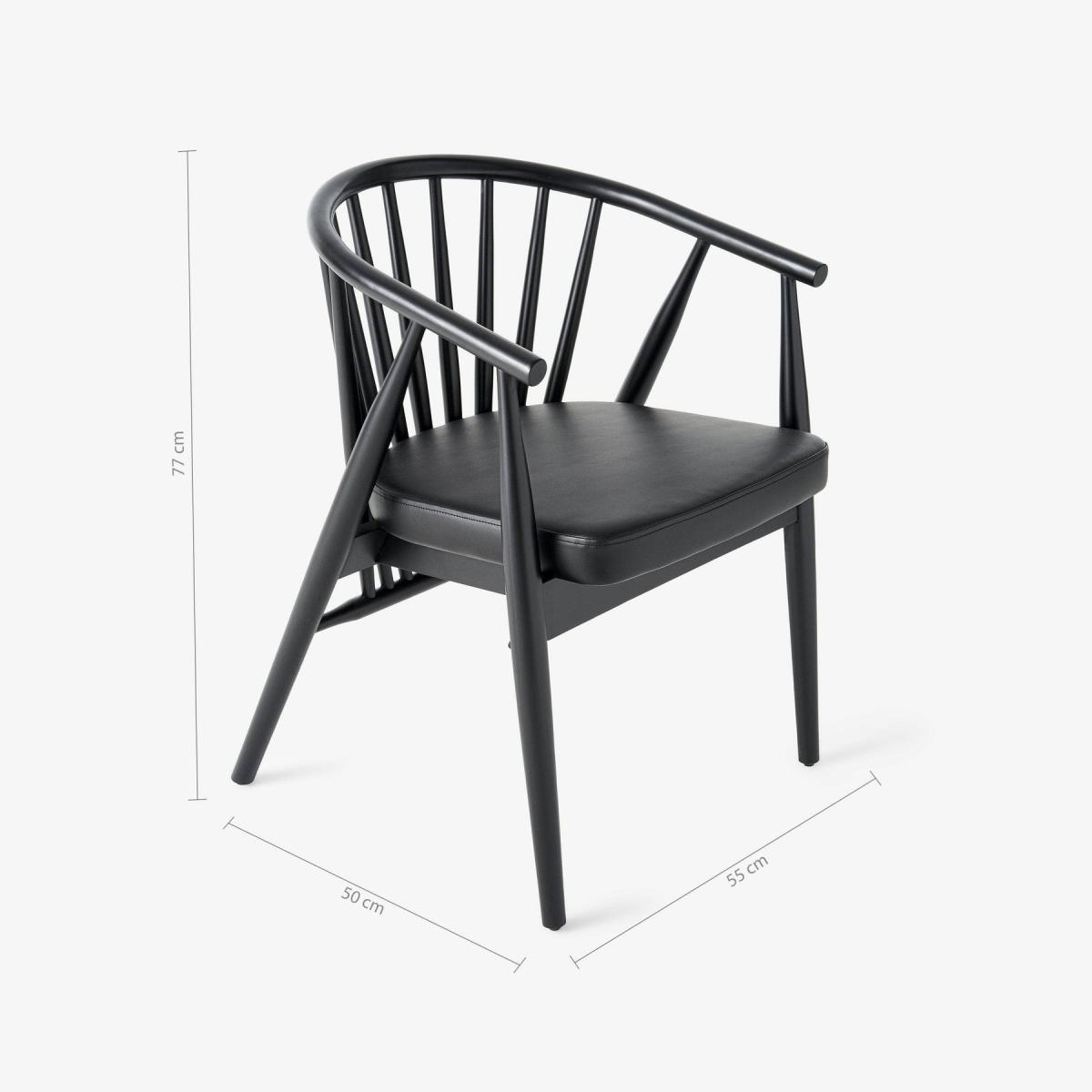 Enjoy the elegance of mid-century style married with contemporary comfort. Our classic Edith is a stylish and affordable alternative to high-end vintage armchairs. Expertly crafted from solid beech, the chair is a subtle yet stylish addition, with its wide seat and curved spindled backrest providing welcome support. Available in either dark walnut with a tan upholstered seat or stained black with a matching upholstered seat, it lends itself to a variety of settings. In our Edith armchair, you can relax in the warmth of a mid-century design that has been updated for modern living.
