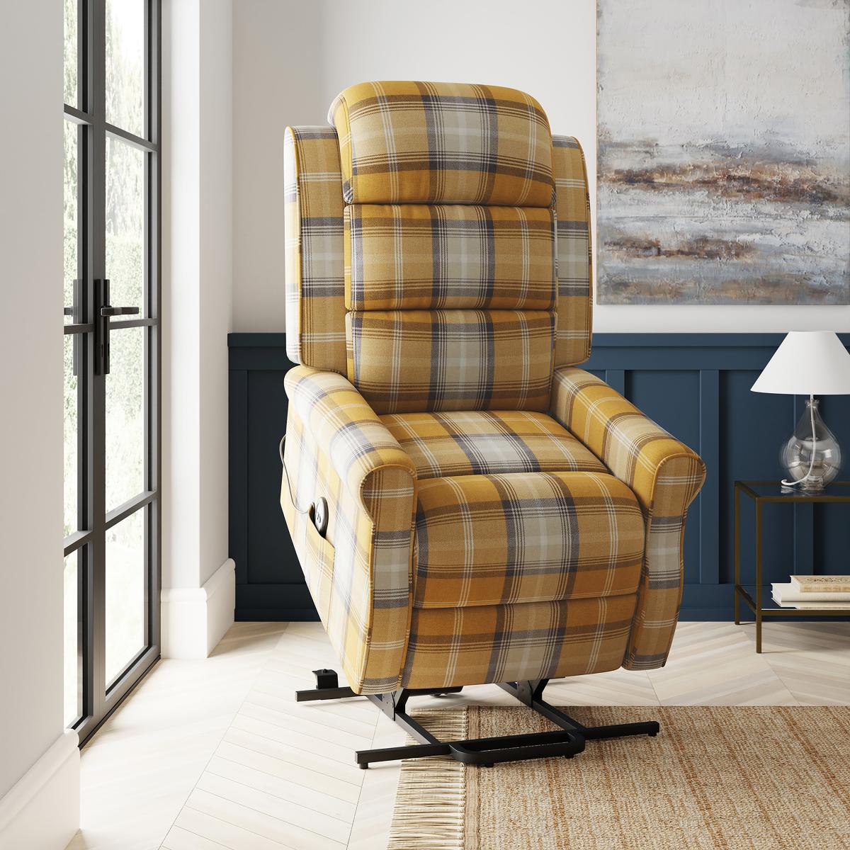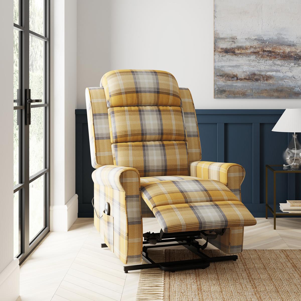 Edith Check Pattern Rise and Recline Chair Old Gold