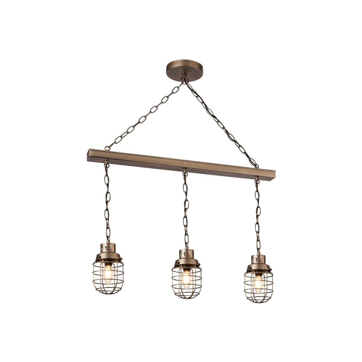 Industrial 3 light pendant bar with matt pewter finish. Part of the Edmunston collection, the 3 light ceiling bar pendant is the perfect addition to both modern and traditional homes. The pendant fitting is composed of a matt pewter beam, chain detailing and 3 caged shades that houses the bulb. This pendant is best above dining tables and breakfast bars. Choose from either our warm white or cool white E14 bulbs.