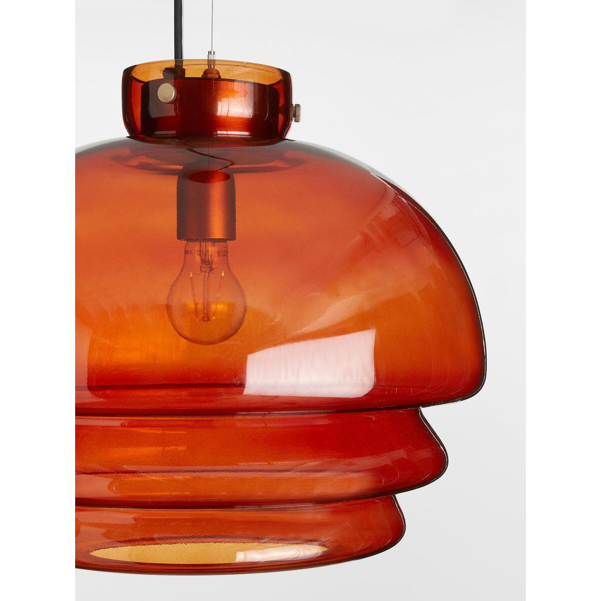 Inspired by Little House West Hollywood, the Edna pendant is handmade by Venetian artisans from mouth-blown amber glass. Suspended onto an adjustable tensile cable, the 1970s-style pendant is set to bring a pop of colour to any space. Venetian mouth-blown glass Handmade by skilled Italian artisans Organic powder used to create the amber colour Single bulb pendant Adjustable tensile cable Requires one x E27 / 60W max bulb