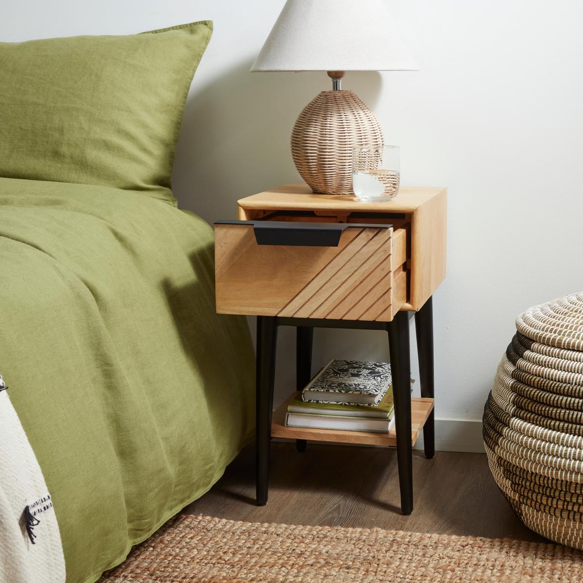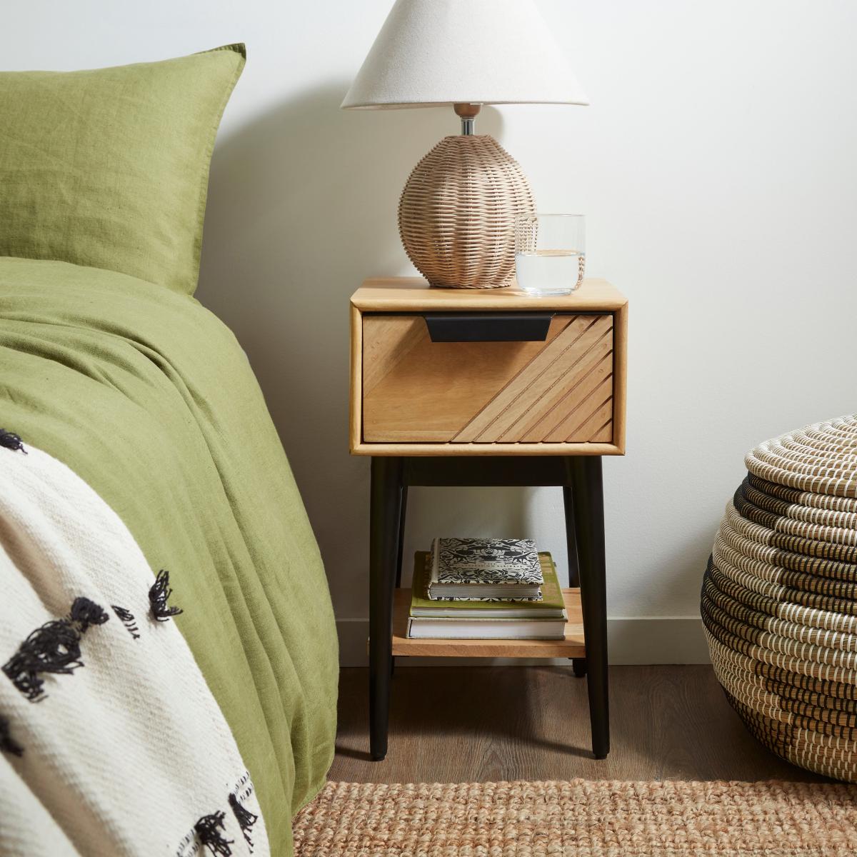 I love this one-drawer bedside table for its clean, natural aesthetic that works equally well in contemporary or Scandi-inspired interiors. The mango wood finish adds warmth and texture, making it a versatile piece that complements neutrals and lighter colour palettes beautifully. Practical styling tips include pairing it with simple, modern accessories like a minimalist lamp or a small vase of fresh flowers to enhance its natural charm. It’s also great for adding a touch of organic texture to rural or boho bedrooms. To maximise storage, use the drawer for essential items like medication or chargers, leaving the surface clear for a statement lamp or a favourite book. Overall, it’s an understated yet functional piece that blends form and function seamlessly.