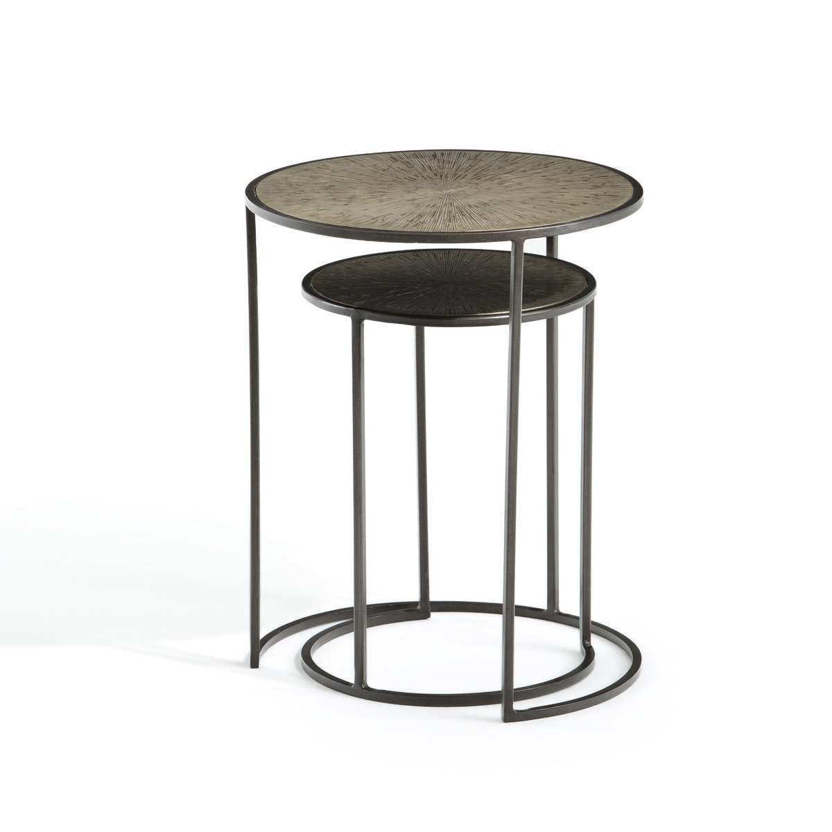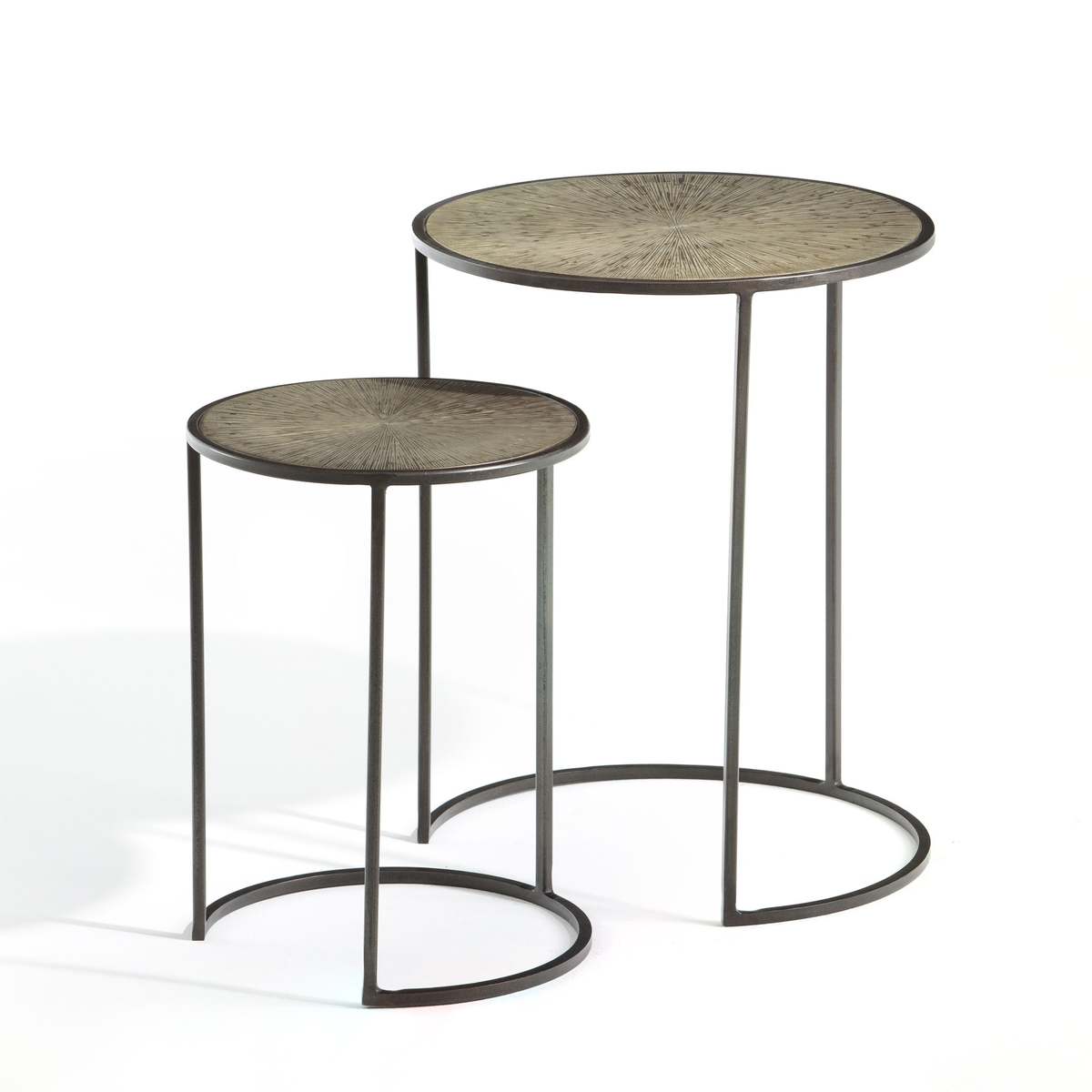 Elegant, modern and striking, these brass side tables - sold in a nest of two - have beautifully textured tops. Use them as a pair or individually.